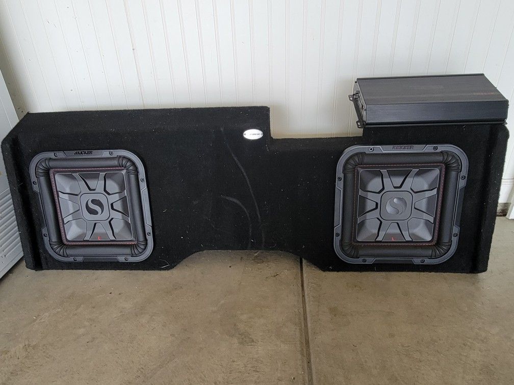 2 L7 kicker solo baric square subs with custom box for 2014-2018 Chevy Silverado. Includes a 3500watt DS18 mono block amplifier. $800 or Best offer!