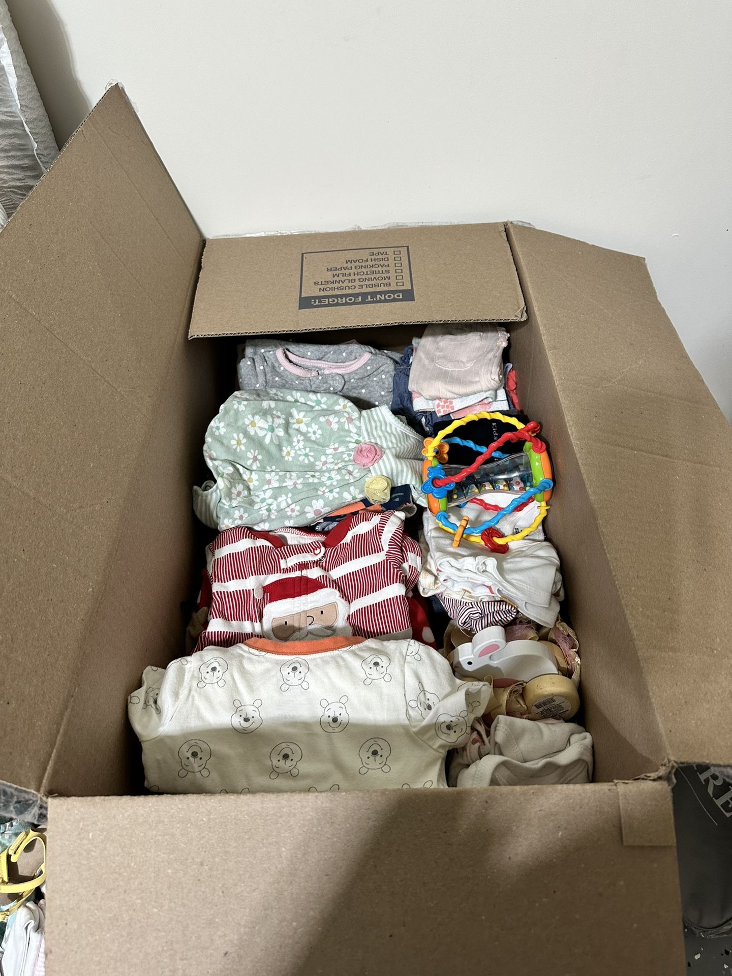 3 months to 9 months Everything in the box $1 per piece Onesies Pijamas Shorts Pants Dresses 95% in excellent condition