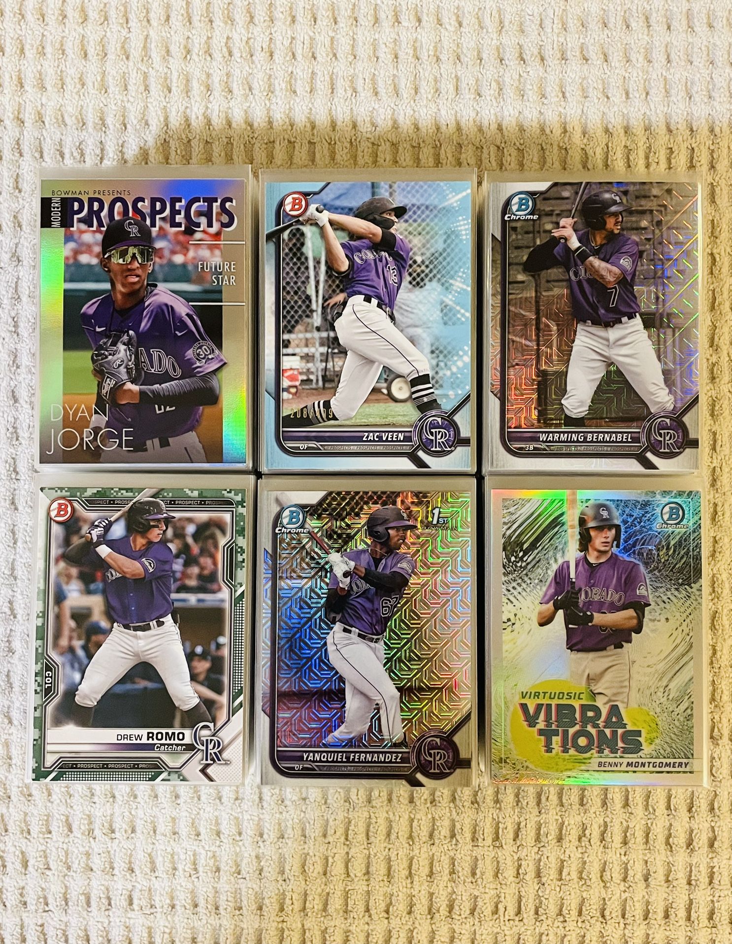 Colorado Rockies 375 Sports Card MLB Baseball Card Team Lot! All cards in mint condition! Rookies, prospects, All-Stars, HOFers, inserts, parallels, refractors, prizms, serial numbers, short prints, exclusives, variations & more! Mix of Bowman, Bowman Chrome, Series 1, Series 2, Update Series, Stadium Club, Stadium Club Chrome, Topps Chrome, Mosaic, Select, Donruss, Donruss Optic, Heritage, Upper Deck & more! Ezequiel Tovar, Kris Bryant, Brenton Doyle, Brendan Rodgers, Ryan McMahon, Michael Toglia, Elehuris Montero, Nolan Jones, Sam Hilliard, Drew Romo, Sean Bouchard, Cal Quantrill, Kyle Freeland, Ryan Feltner, Austin Gomber, Justin Lawrence, Daniel Bard, German Marquez, Antonio Senzatela, Yanquiel Fernandez, Benny Montgomery, Robby Martin Jr, Zac Veen, Dyan Jorge, Warming Bernabel, Charlie Blackmon, Nolan Arenado, Trevor Story, Todd Helton, Larry Walker, Andres Galarraga, Vinny Castilla, Dante Bichette & much more! $75 for the lot! Local pick up & shipping available. Message for details. Thank you!
