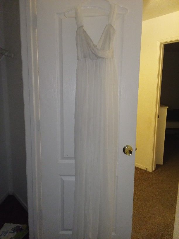 Chiffon style white maternity dress for pictures completely open in the belly area size large never used last picture for reference