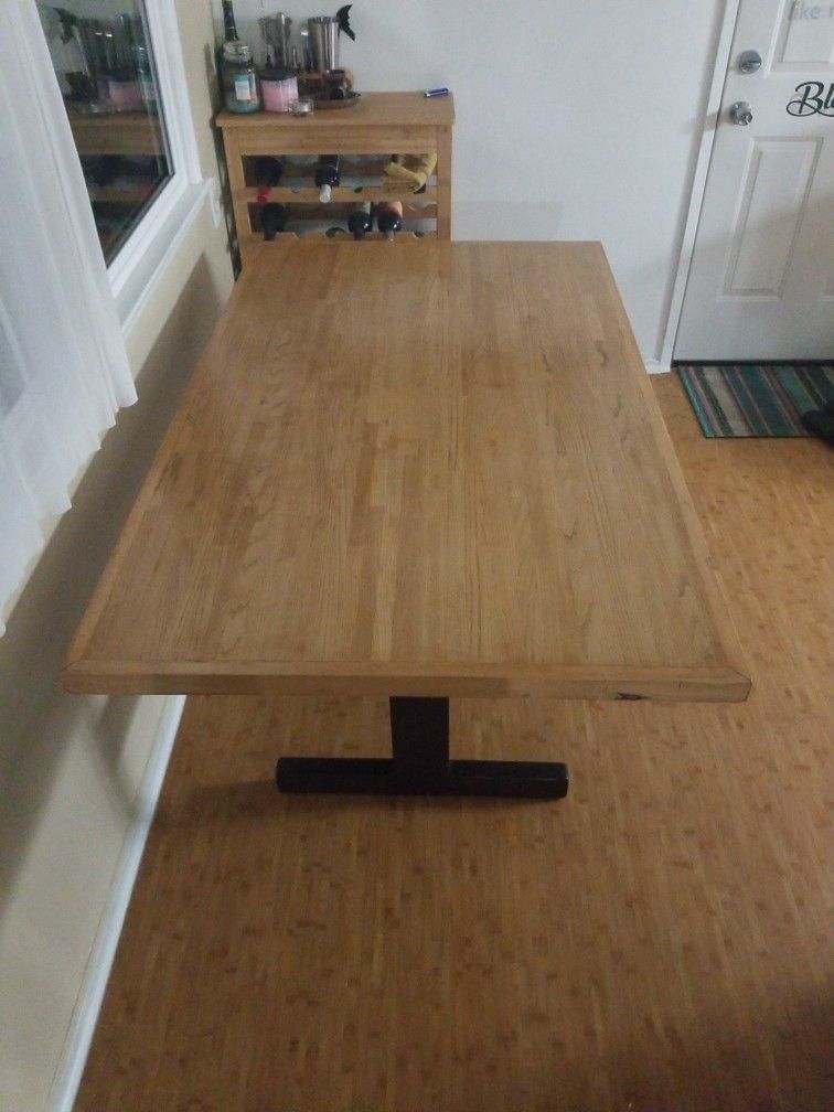 5 foot by 3 foot table top 28 1/2 inches height strong and sturdy and cured semi gloss clear top satin kona brown stain legs brand new hardware can be used as work table, dining table, computer table 200obo make me an offer
