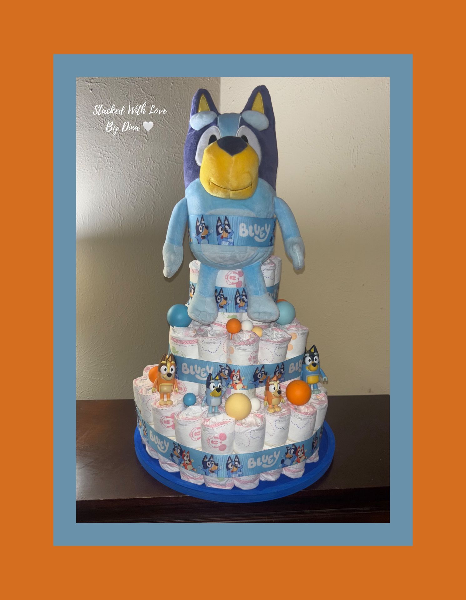 💙 Bluey Diaper Cake Baby Gift – 1st Birthday / Pastel de Pañales de Bluey-Cumpleaños 🩵