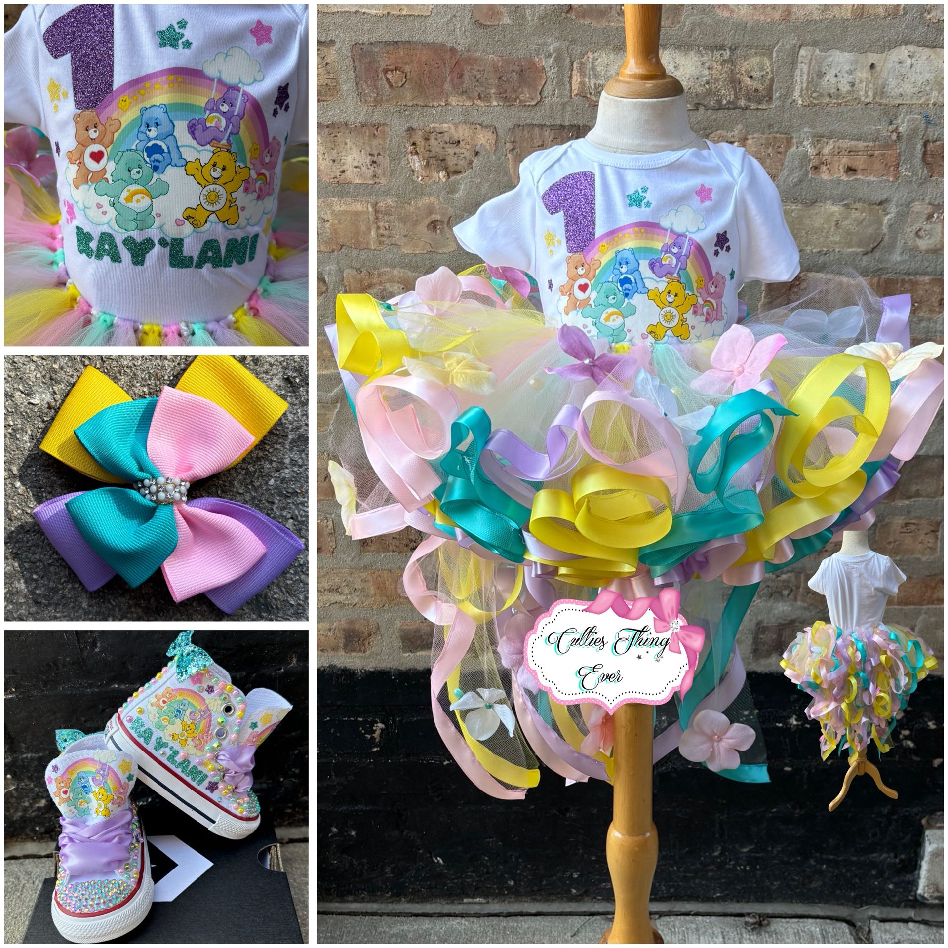 Handmade and by order the set includes shirt tutu and hairbow the price depends on the size and the set .Shoes are seperate