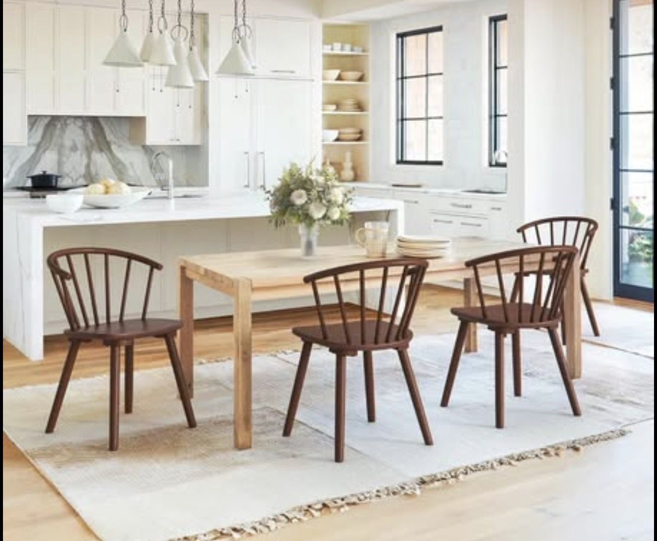 LUE BONA Dining Chairs Set of 4, Farmhouse Wood Dining Chairs with Semicircular Backrest, Spin