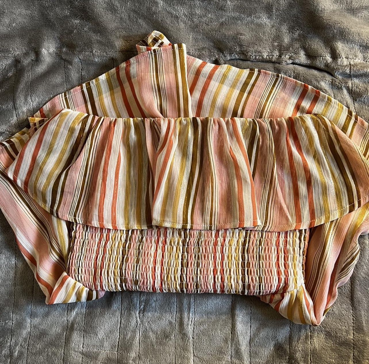 Beautiful Vintage 60βs Romper πβ¨ Across the shoulder neckline, elastic waist. Has subtle sparkle to it. Soo flattering & flowy! Great quality. Waist: 26in but is elastic so can fit up to 28. Just not my style anymore and deserves a good home