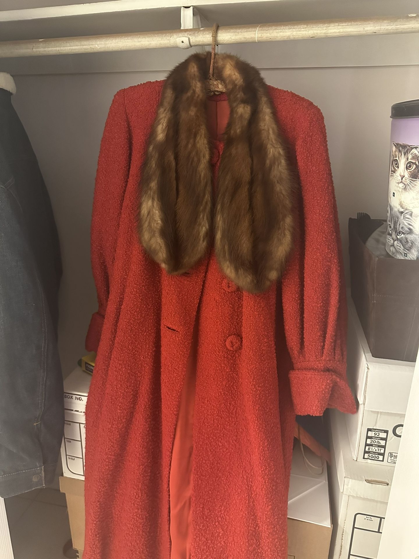 Vintage Stone Marten Fur Wrap Stole. Red button up trench coat. Excellent vintage condition with intact. Further details please see the pictures.