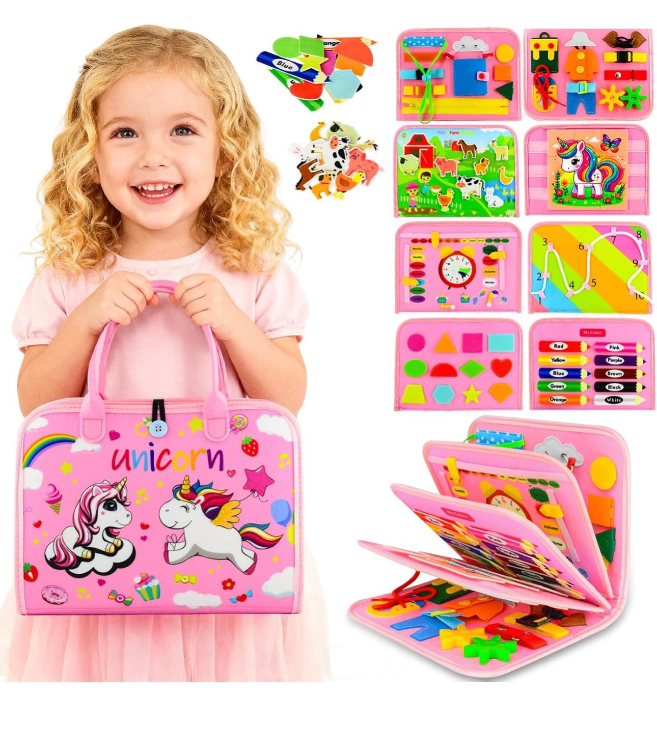 🔥Brand new🔥 Toddler Busy Board Montessori Toys, Busy Book Educational Learning Toys for Toddler Girls, Activity Book Sensory Toy with Life Skills, K