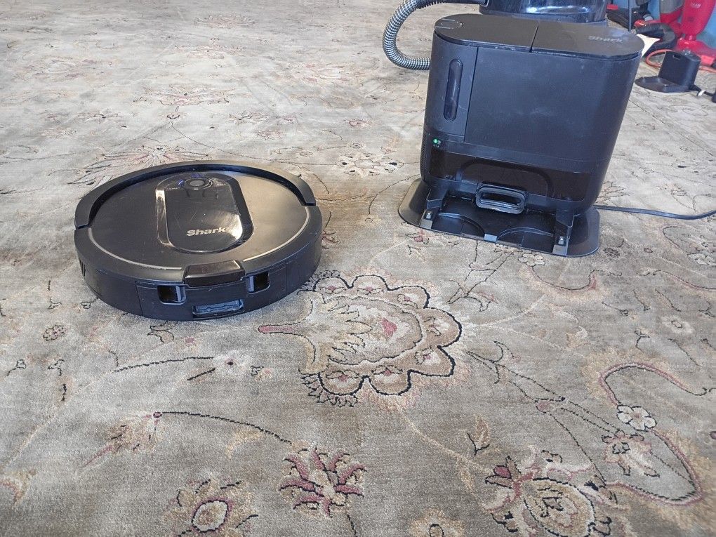 Cordless robot shark bagless vacuum cleaner for carpet and hard floors with trash can emptier in excellent condition comes with a 30 exchange warranty
