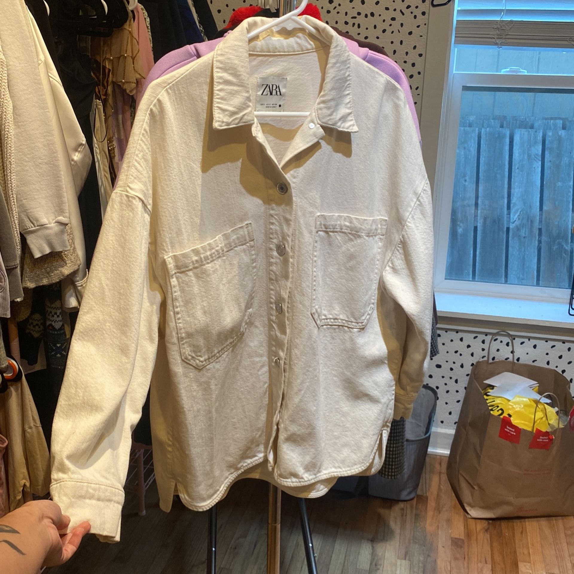 Barely worn!! Beautiful cream color. Jean jackets just aren’t my thing. Size small but can go for medium.