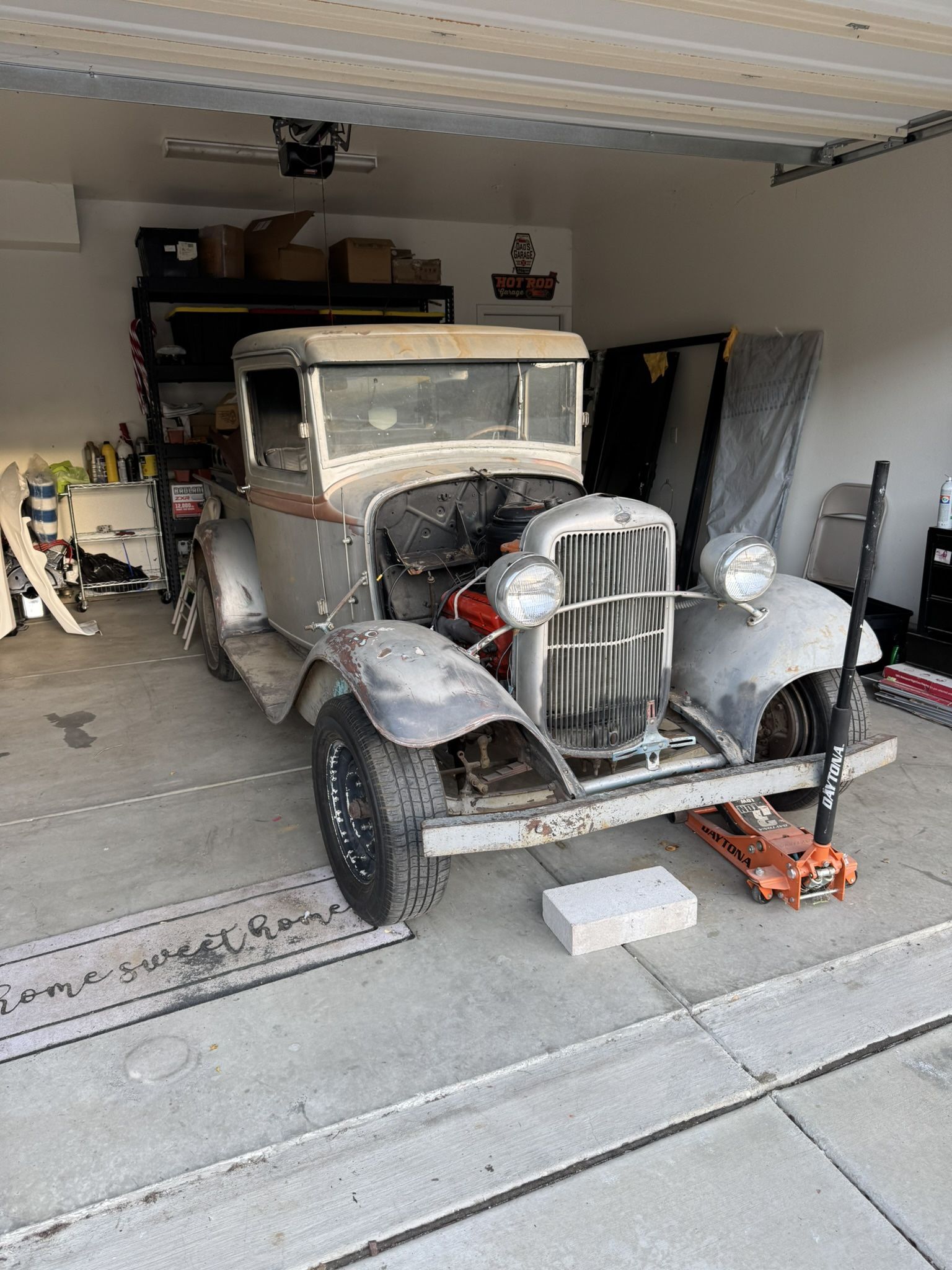 1932 Ford pick up has a 265 Chevy V8 motor in it. It does run. The truck is drivable with minimal work have all kinds of extra parts for an additional price that are on the bed in the truck that are not included.