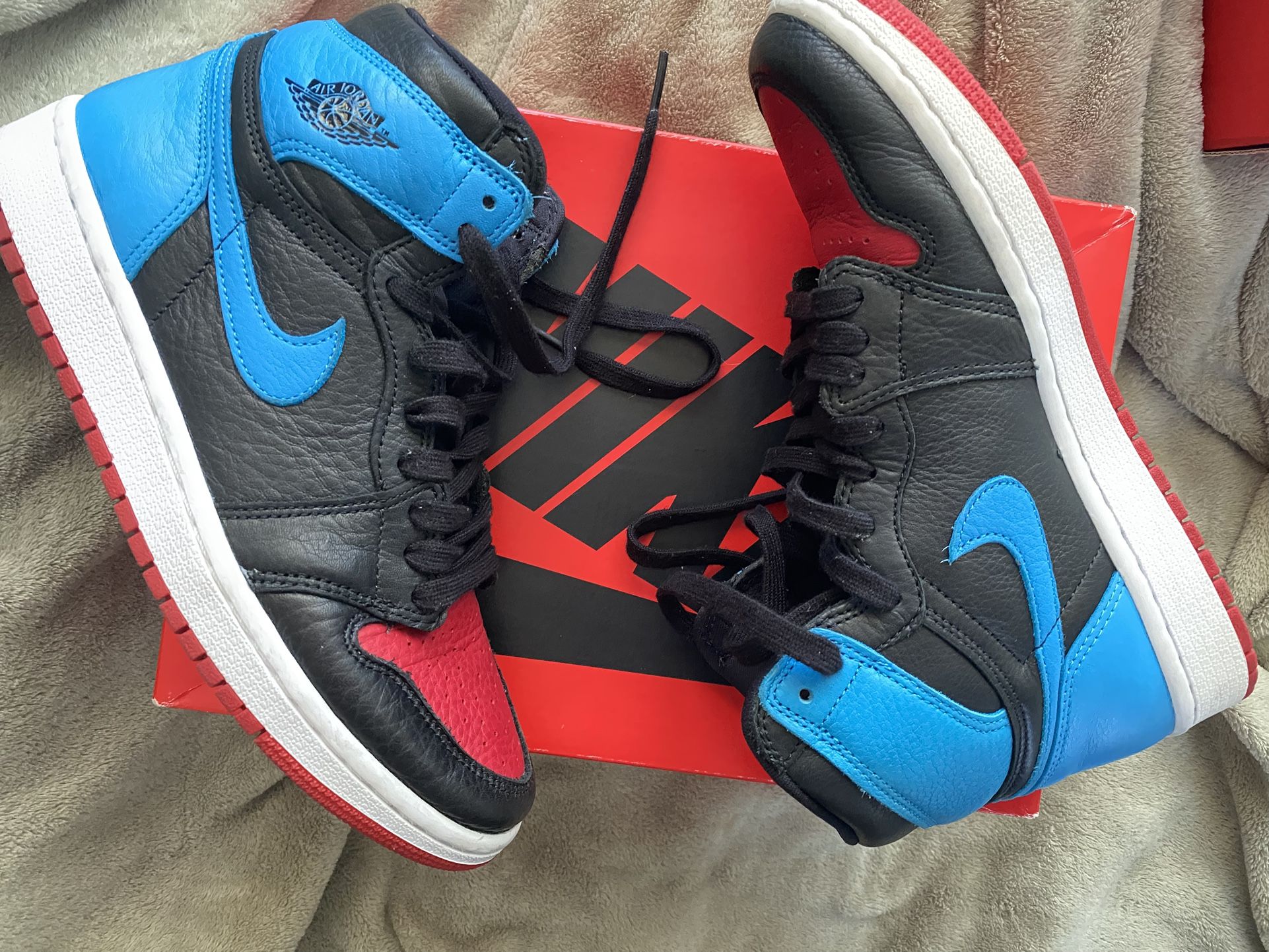 Size 7.5 Jordan 1 UNC to CHI for sale. Comes with OG box, used in good condition, has the stars. Make me an offer!