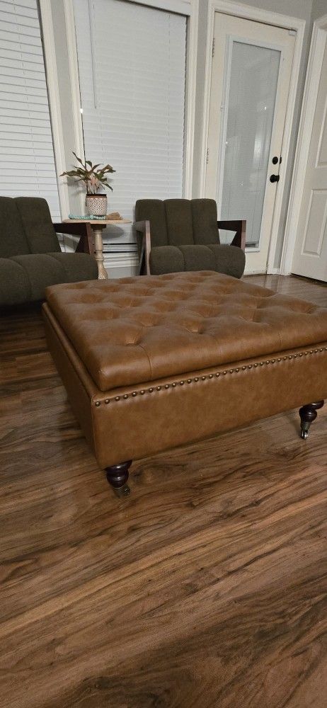 Upholstered Square Tufted Storage Ottoman. In very good condition.