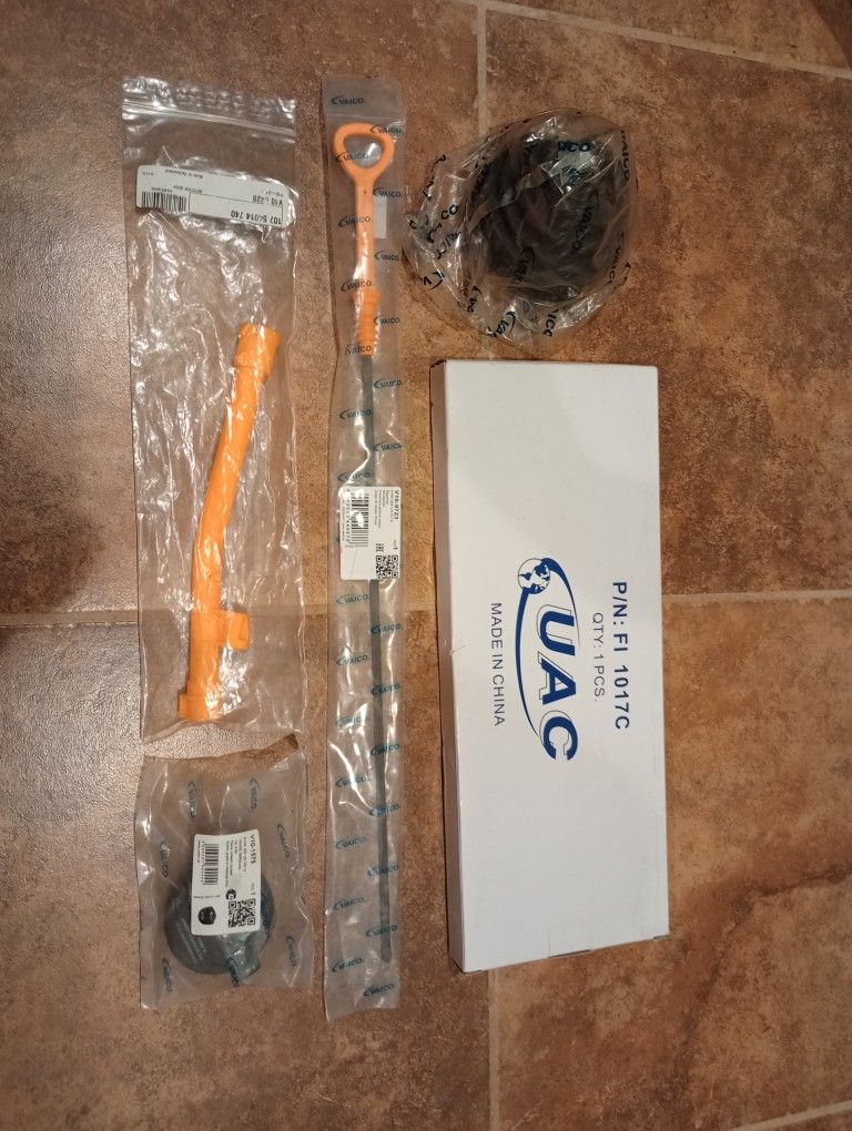 These parts are for a 2003 Volkswagen Passat. Parts include: gas cap, CV axle boot, air filter, oil dipstick and dipstick housing. All parts are brand new