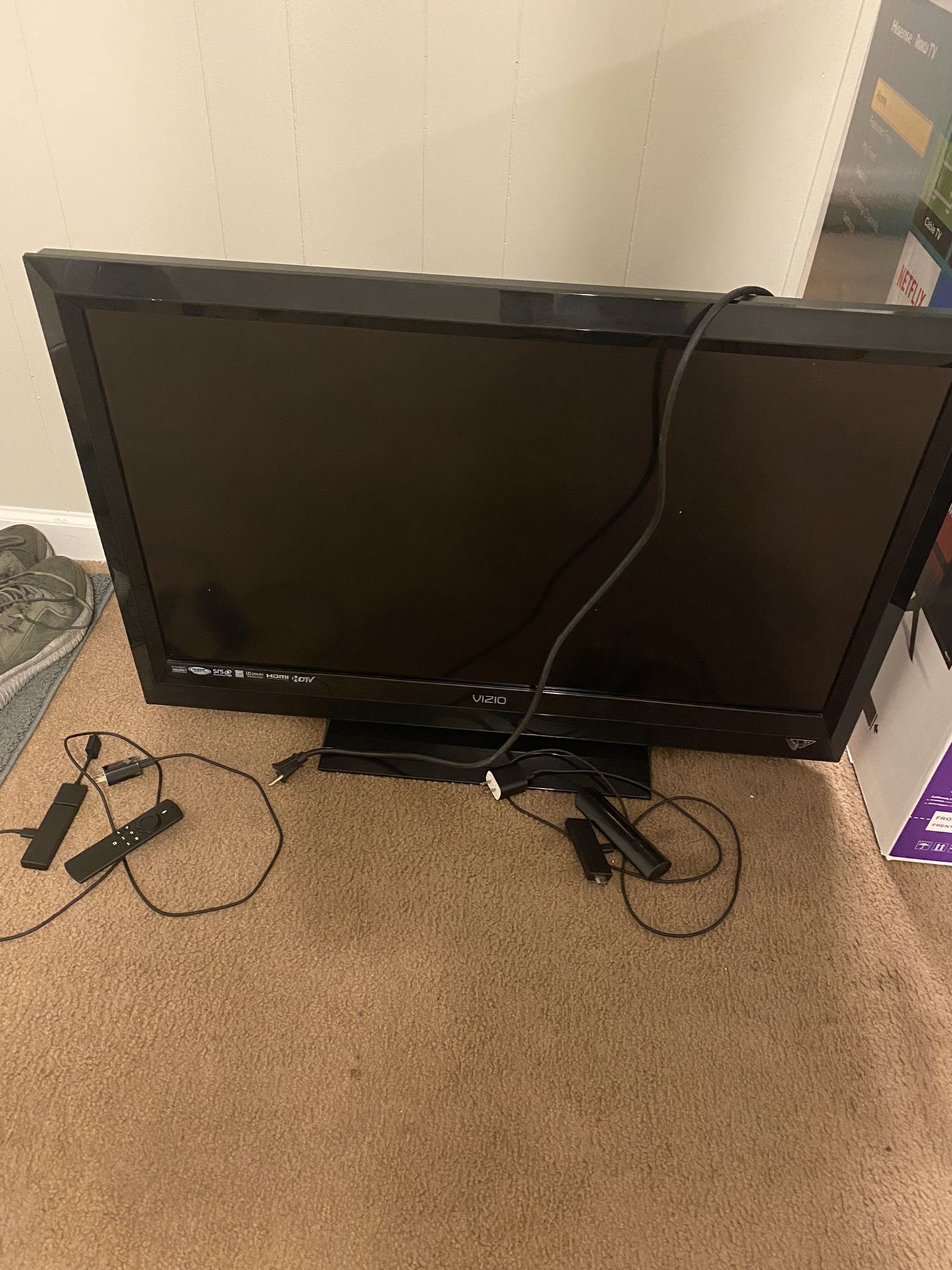 40 inch Vizio flatscreen tv & two jail broken fire sticks. Just need universal remote for tv everything works fine no issue.