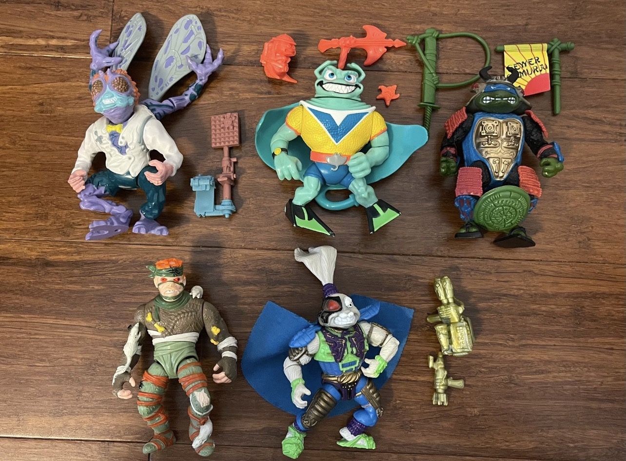 Samurai Leo complete, $20 Baxter complete, $20 Ray Fillet complete, $20 Rat King (no accessories), $7 Space Usagi (detach cape, no helmet), $15