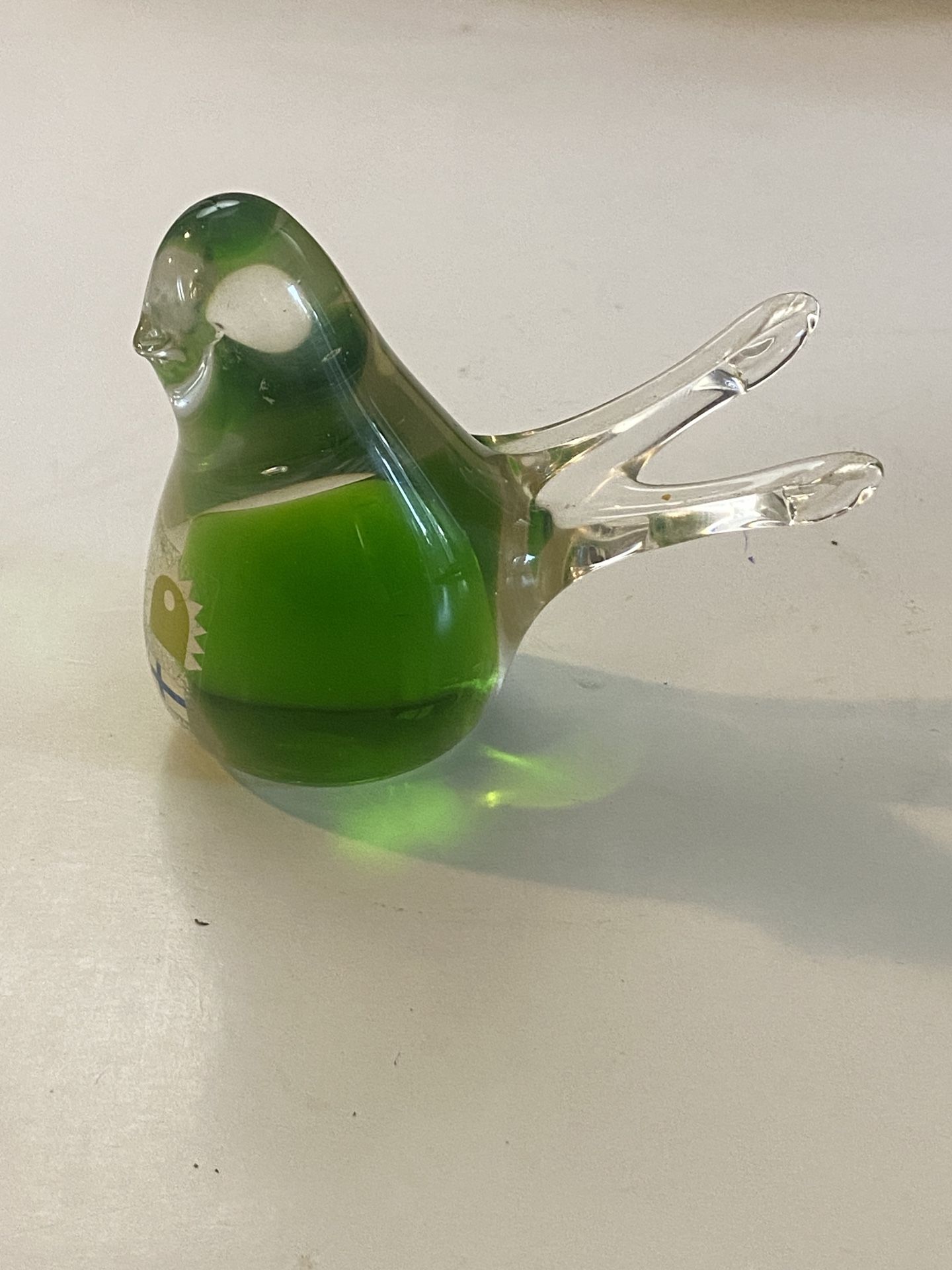 Vintage Humppila Bird Figurine Green Glass Middle Hand Made In Finland MCM