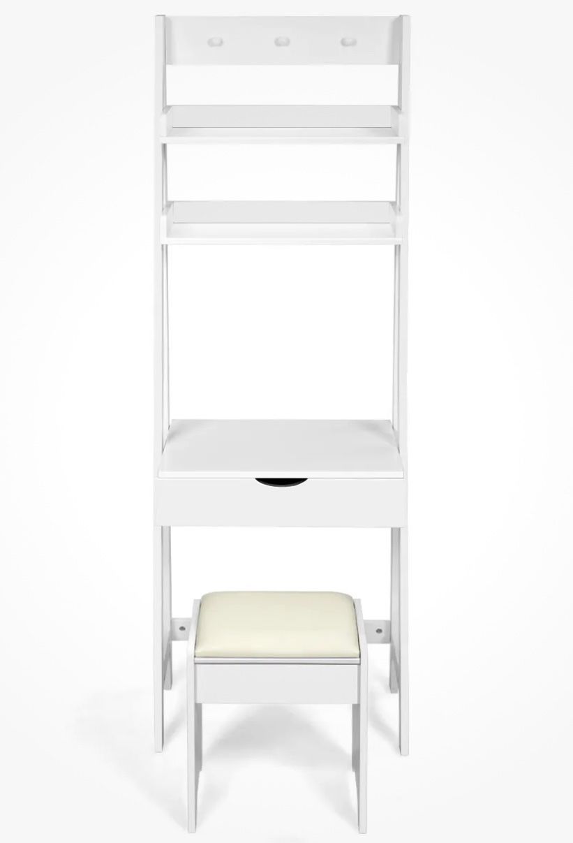 HW66074 Vanity Set w/ Flip Top Mirror Makeup Dressing Table Set 3 Hook & 2 Shelves NEW IN BOX