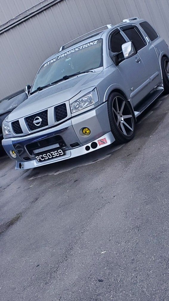 I'm selling my 2005 nissan armada le fully loaded with black leather interior no rips or tears navigation,back up camera. With 24" status wheels wrapped with 305 35 24" tire's. Cold a/c heat works $7,000 obo