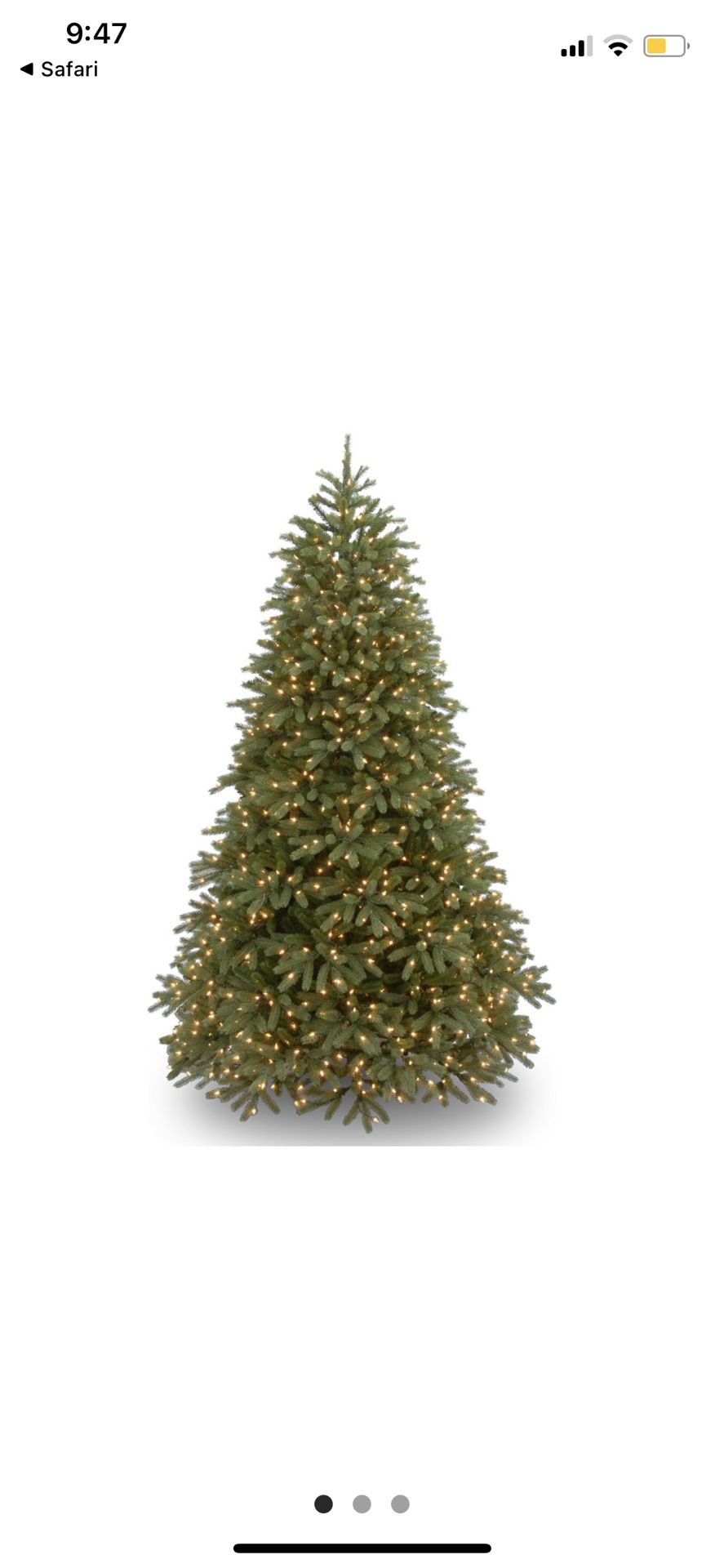 Retails for $419.98 plus tax and shipping Description The Jersey Fraser Fir Tree features Feel Real® branch tip technology, creating a tree with remarkable realism. This tree is pre-strung with 900 Dual Color® lights that change from warm white to multicolored with the touch of a button. The bulbs are low-voltage LEDs that are energy efficient, long-lasting and cool to the touch. A foot pedal switch is included to control nine different light colors and actions. The medium width of this tree makes it a good choice where floor space is limited. Hinged construction and a metal tree stand add to ease of assembly. Create the Perfect Look! Decorating's a breeze with stunning pre-lit trees and festively themed collections. Looking for inspiration? Check out our Christmas Tree Look Book. Specifications: 6.5' tall 48" diameter Lights change from warm white to multicolored LED lights are energy efficient and long lasting Includes spare bulbs All metal hinged construction (branches are attached to center pole sections) Includes sturdy folding metal tree stand Fire-resistant and non-allergenic Packed in reusable storage cartons Assembly instructions included Assembled Size: 48" x 48" x 78"