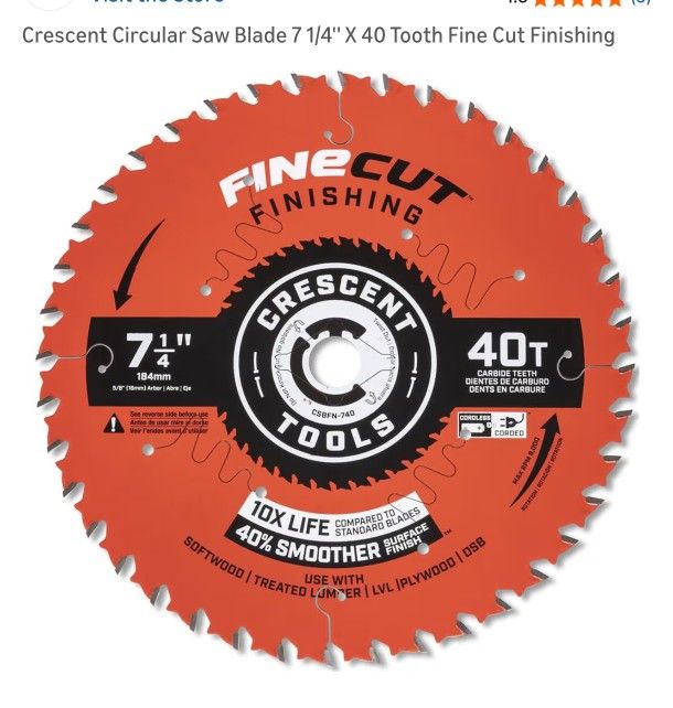 Crescent Circular Saw Blade 7 1/4'' X 40 Tooth Fine Cut Finishing