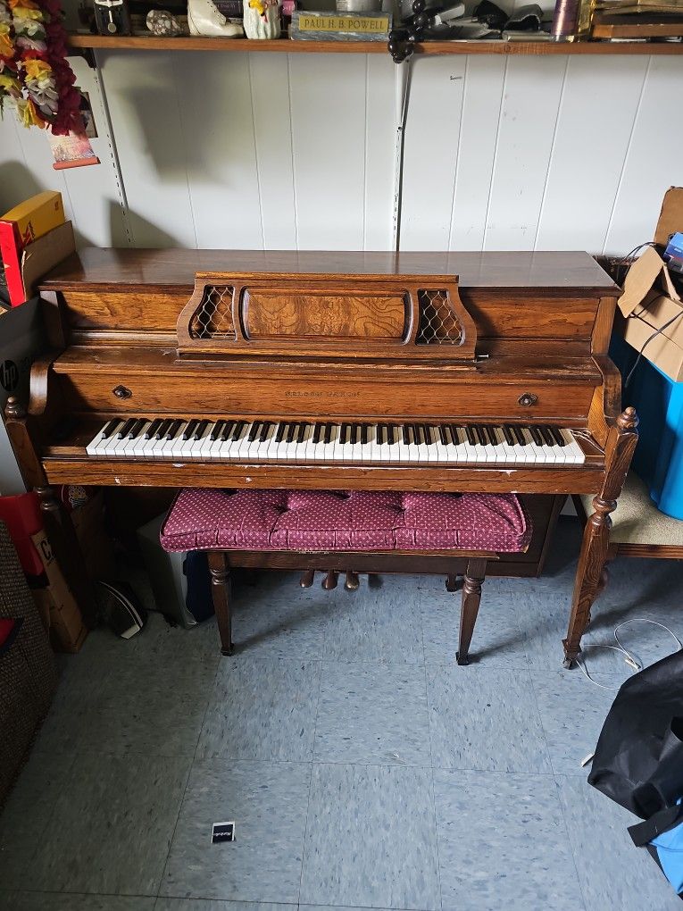 Piano available for pickup in as-is is state. It is heavy and MUST be able to pick up. Right leg needs repair