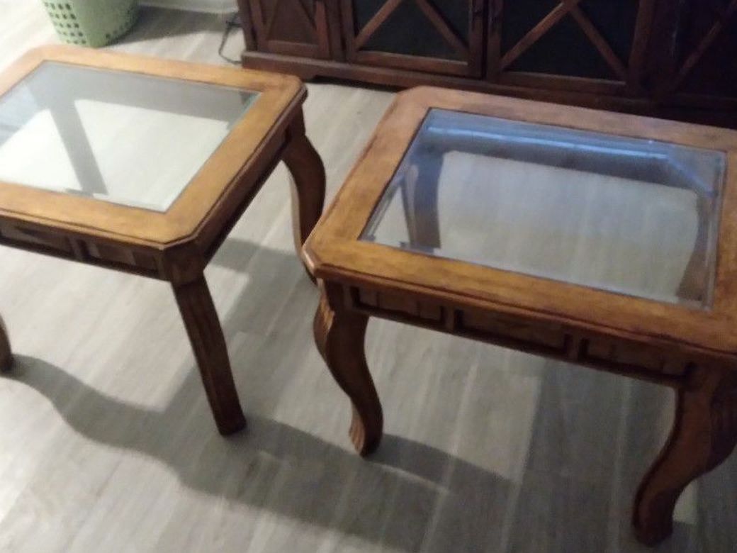 Normal wear and tear. Includes the glass table top that fits right in to the top of the table. Trying to get $15 each