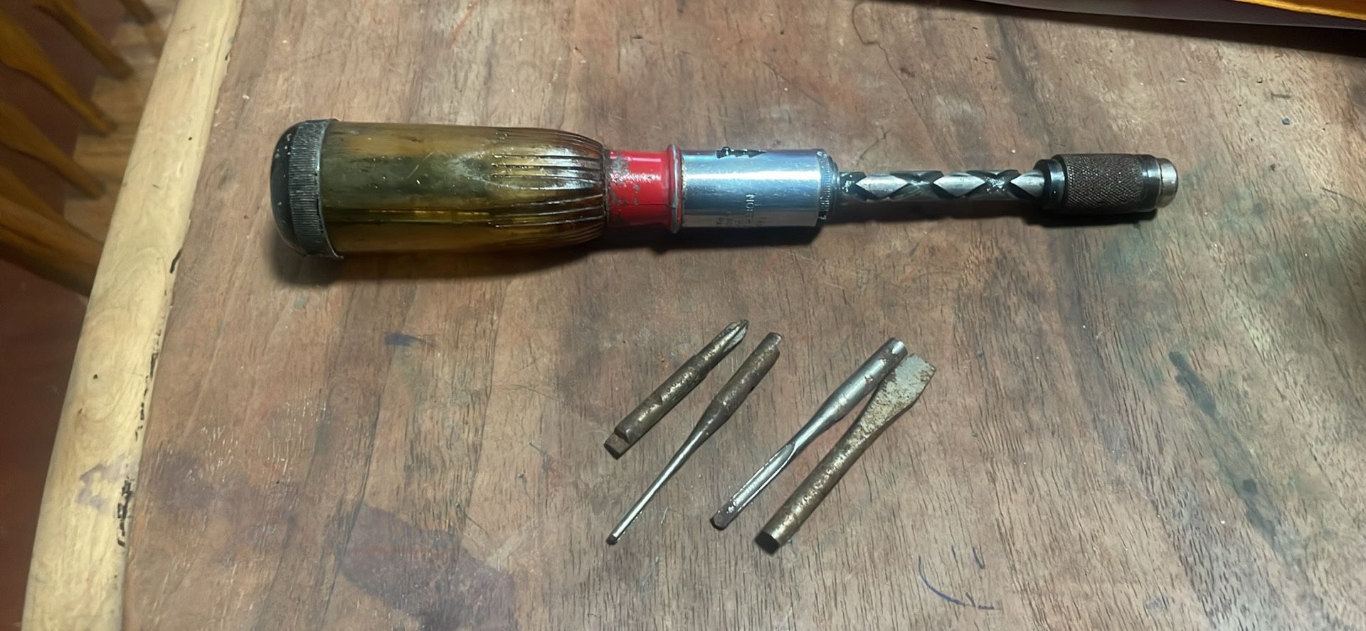 Stanley Yankee Vintage Handyman Push Drill Spiral Screwdriver No. 233H w/4 Bits