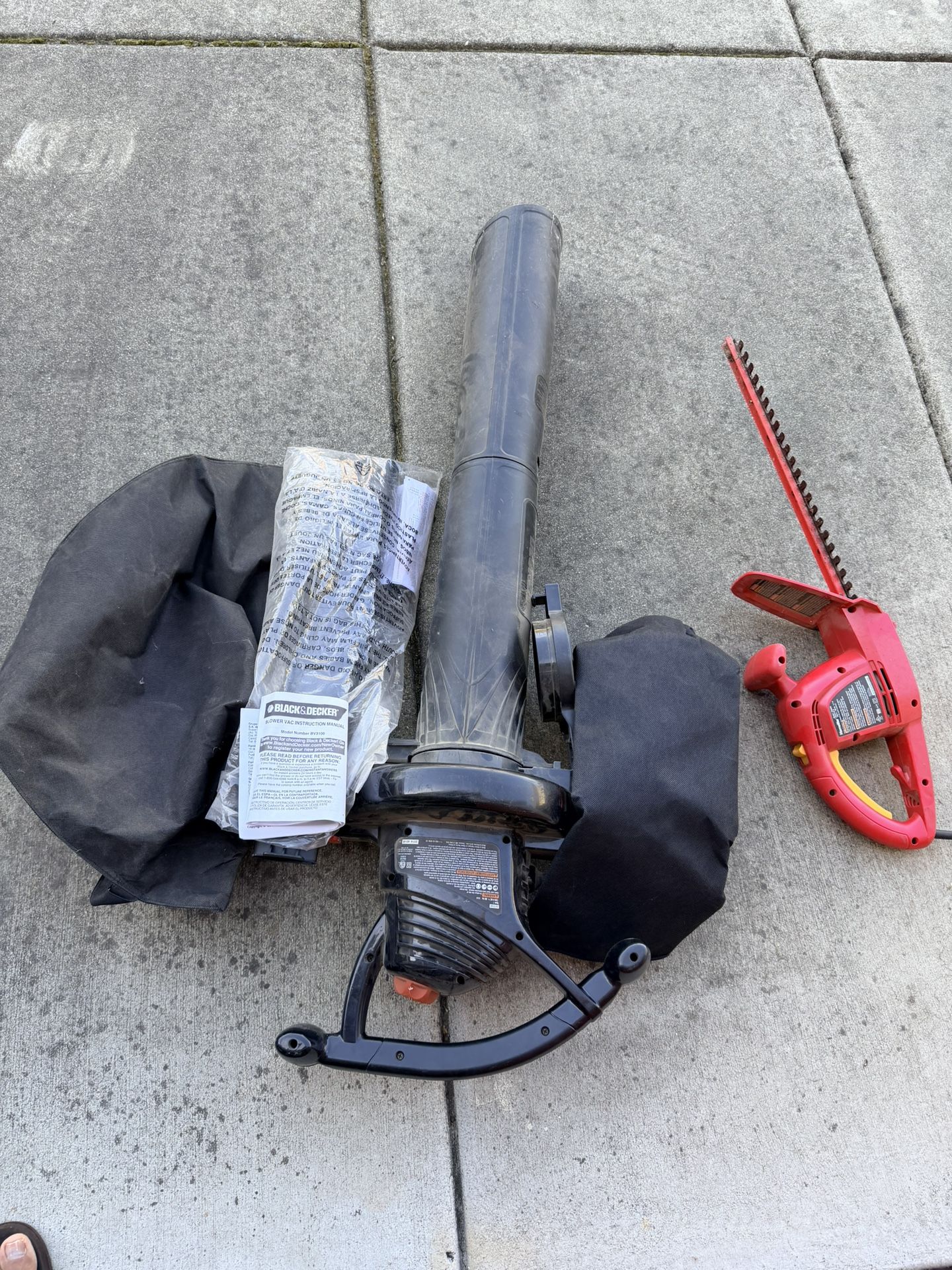 Black & Decker Blower Vac BV3100, and Homelite electric hedge trimmer