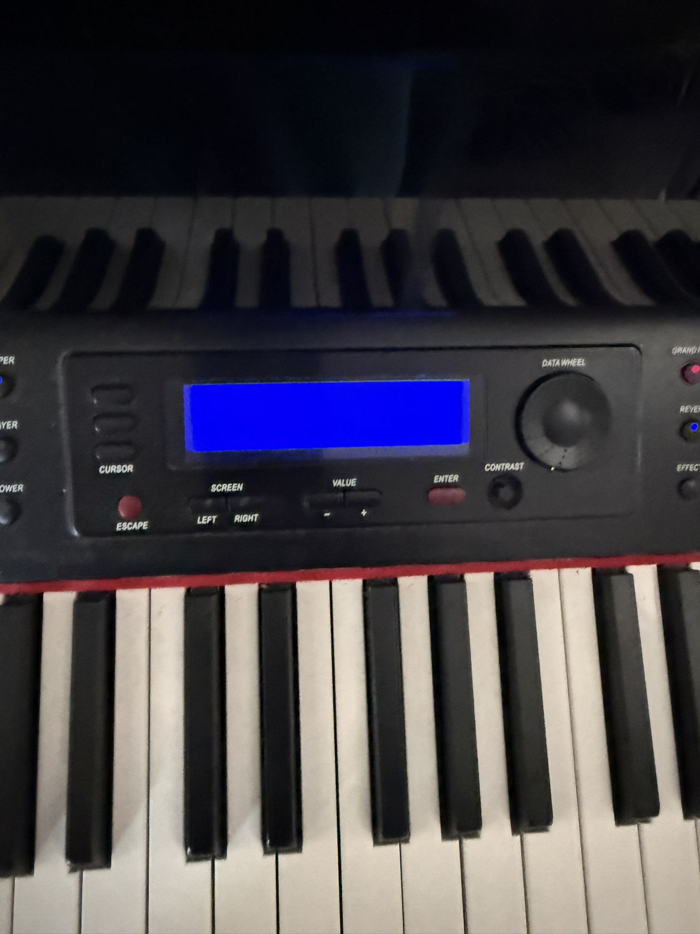Small digital baby grand in good condition the screen lights up and everything works just the words stop showing probably an easy fix just need the room al keys work peddles power 500.00