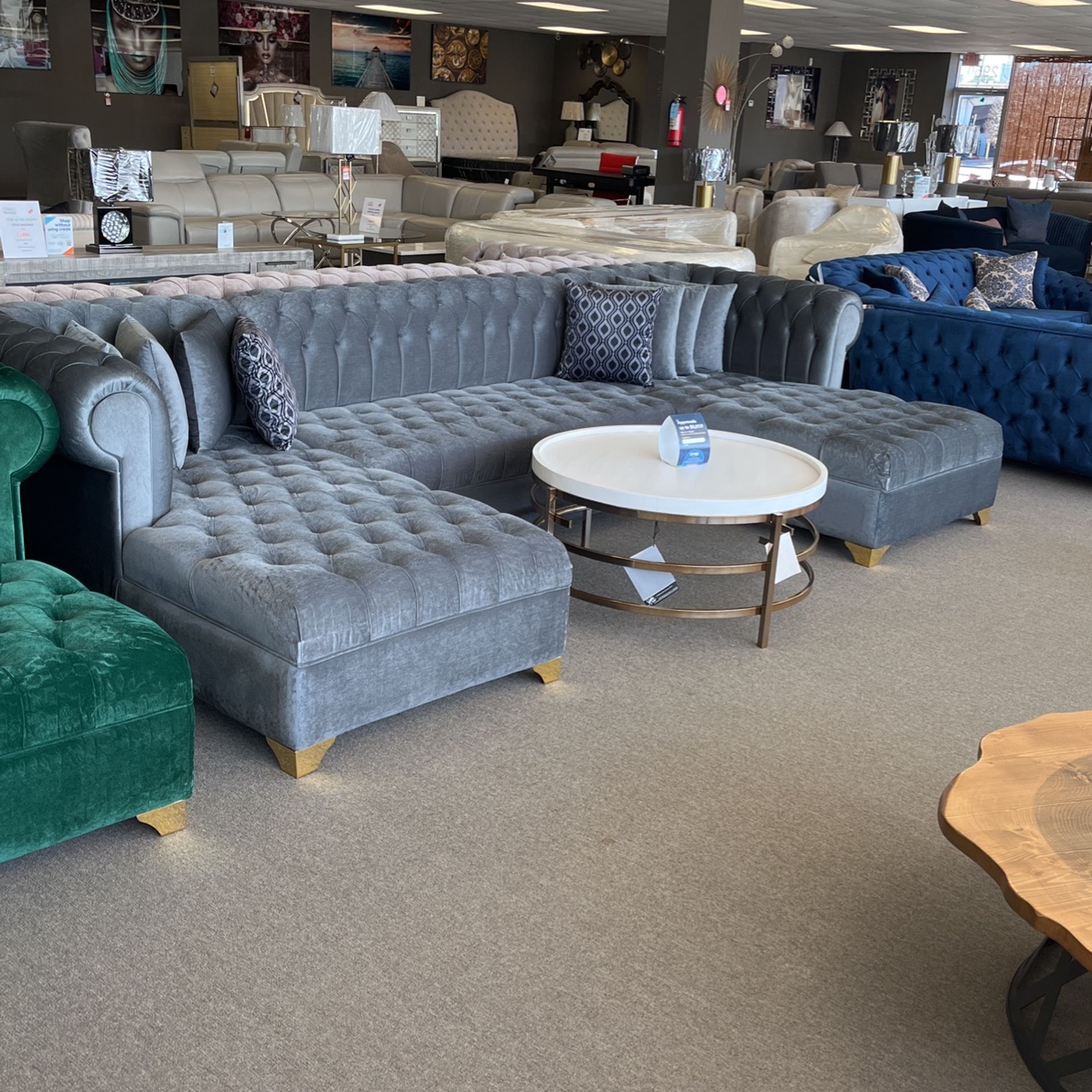 Grey velvet Double Chaise 🙏🏽Low Down🌞Same Day Delivery 🚚 Not Credit Needed
