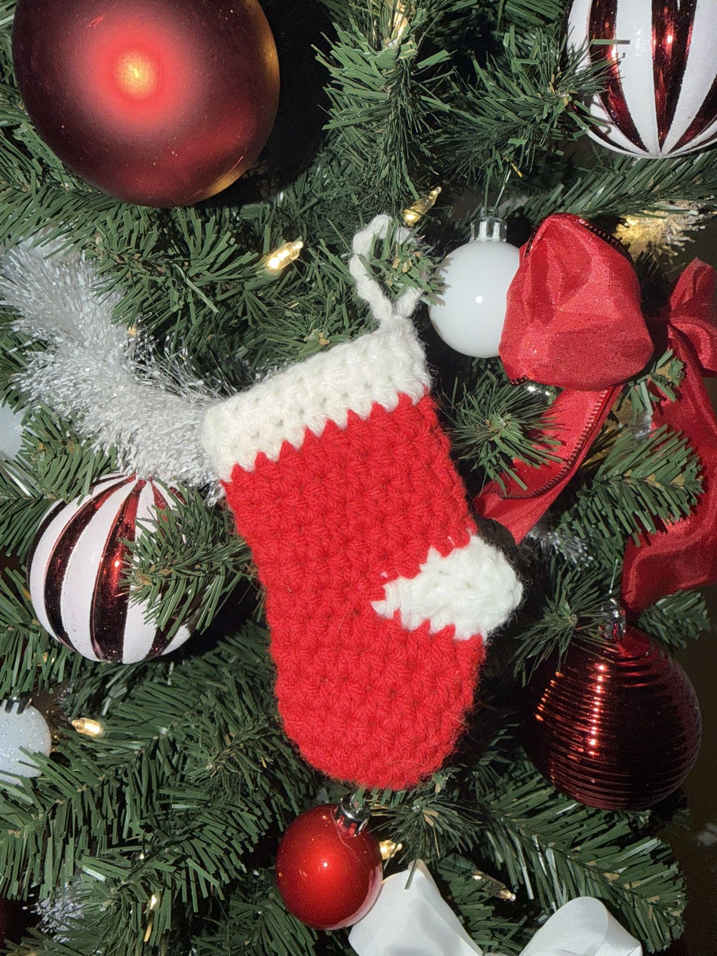 Handmade crochet stocking stuffers ready for Christmas and can also be customized with names. You can order in different colors. $6 crochet stocking $8 customizable with names