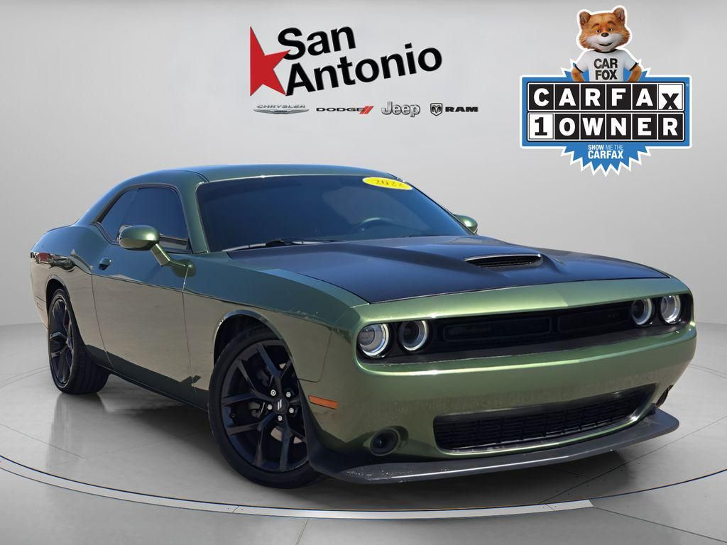 Discover the perfect blend of style and performance with this 2022 Dodge Challenger GT. This stunning sports car is a true head-turner, boasting a bold and aggressive exterior that commands attention wherever it goes.- *MANAGER SPECIAL*- Blacktop Package- Quick Order Package 2EL- Black Fuel Filler Door- Black Grille w/Bezel- Challenger Blacktop Grille Badge- GT Black Grille Badge- Rear Black Spoiler- Satin Black Dodge Tail Lamp Badge- Apple CarPlay/Android Auto- Gloss Black I/P Cluster Trim Rings- Wheels: 20"" x 8.0"" Black Noise PaintedPowered by a robust 3.6L V6 24V VVT engine and paired with an 8-Speed Automatic transmission, this Challenger GT delivers an exhilarating driving experience. With a fuel-efficient 19 city/30 highway MPG rating, you'll enjoy the perfect balance of power and efficiency.The Blacktop Package adds a touch of menacing style, with a black fuel filler door, black grille, and black spoiler, complementing the stunning F8 Green exterior. Inside, the Houndstooth Cloth Performance Seats provide both comfort and support, while the Uconnect 4 infotainment system with 7"" display keeps you connected and entertained.Packed with an impressive array of advanced features, this Challenger GT offers the perfect blend of performance, technology, and style. From the standard Apple CarPlay and Android Auto integration to the SiriusXM Satellite Radio, you'll enjoy a premium driving experience every time you get behind the wheel.Don't miss your chance to own this exceptional 2022 Dodge Challenger GT. With its impressive capabilities, head-turning looks, and well-appointed interior, this sports car is sure to turn heads and provide an unforgettable driving experience. Visit our showroom today and let us help you find your new Chrysler, Dodge, Jeep, or RAM right here in San Antonio!Find your new Chrysler, Dodge, Jeep, or RAM right here in San Antonio! Serving nearby cities like Cibolo, Selma, Converse, and New Braunfels — plus premium neighborhoods like Alamo Heights and The Dominion — San Antonio Dodge is your go-to dealer for new vehicles. And with our Easy Price Promise, you'll always know you're getting a great deal. Come see us today — no stress, just the keys to your next vehicle.