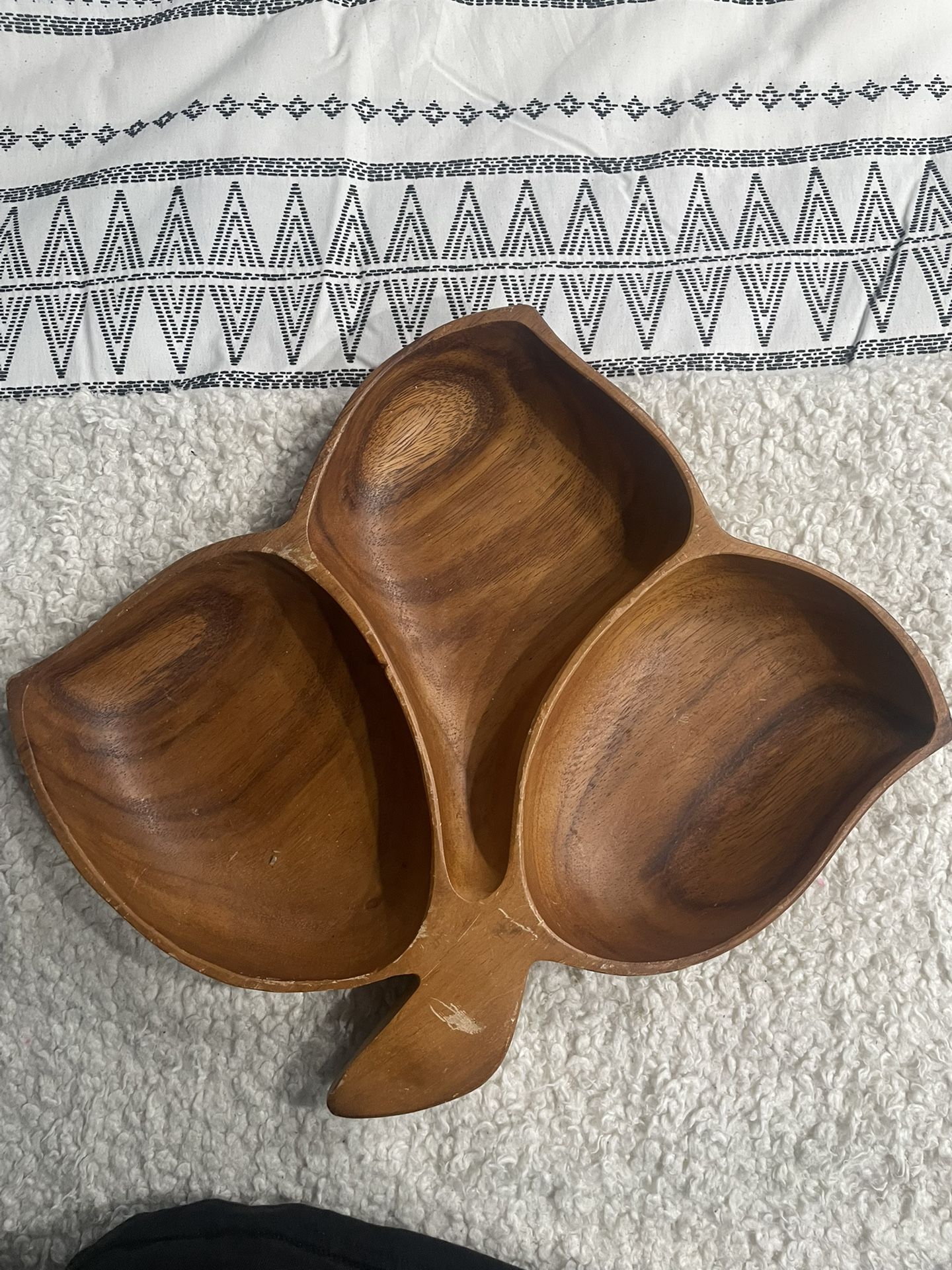 Never been used Vintage Philippines boho monkey pod divided leaf bowl available for pick up in Cape Coral message me if interested.