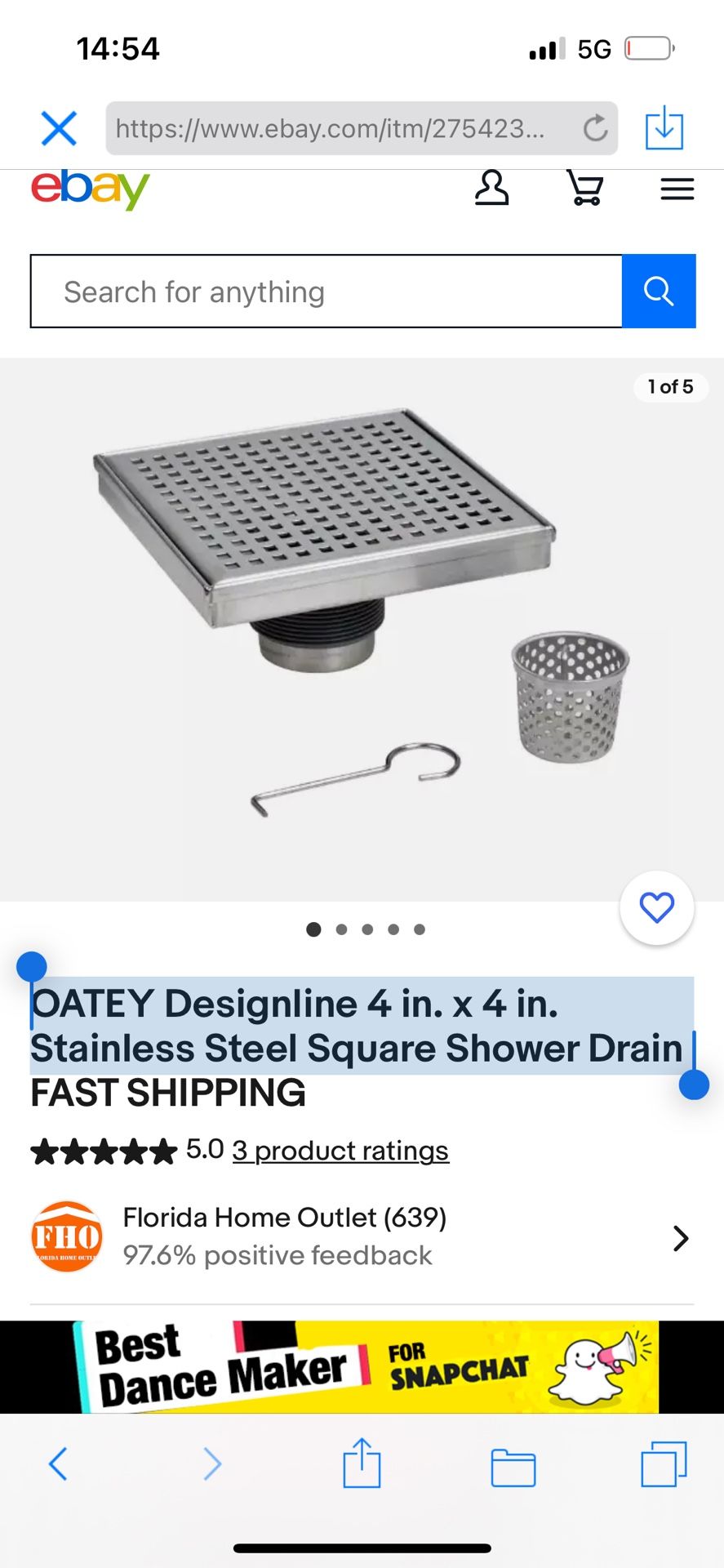 OATEY Designline 4 in. x 4 in. Stainless Steel Square Shower Drain