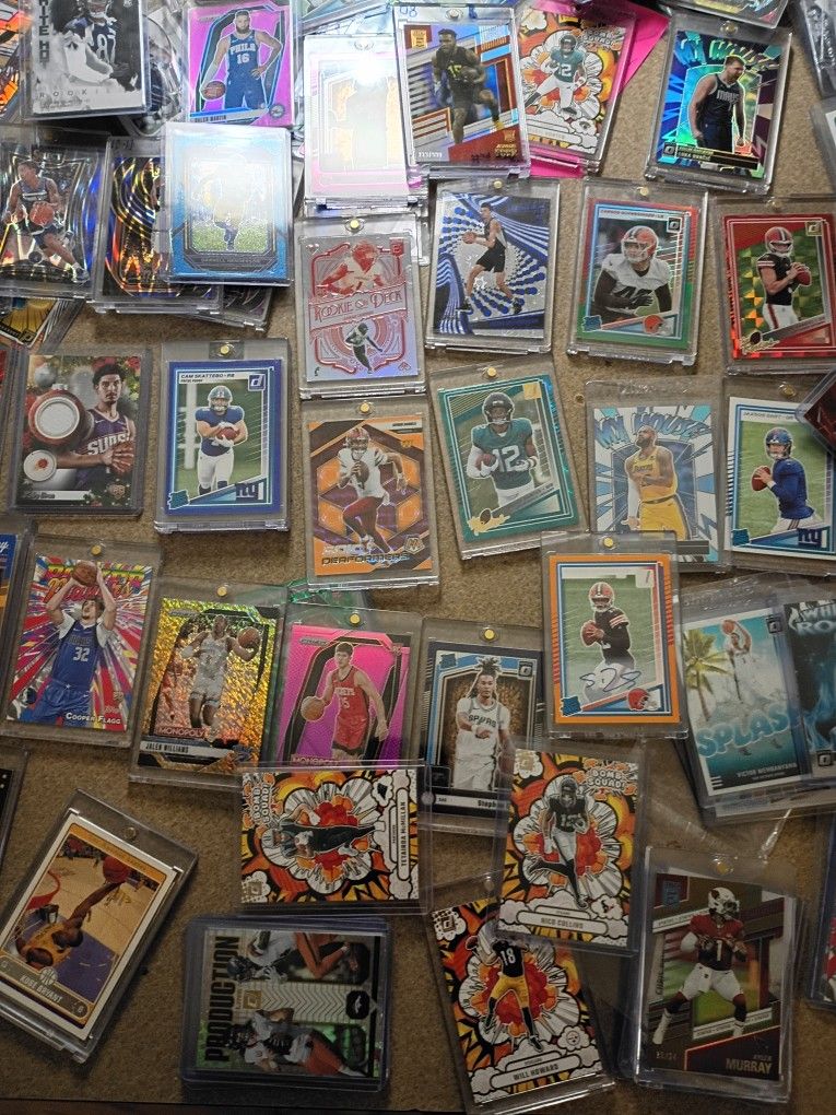 1(contact info removed). Have much more. Let me know what your interested in or who and what team you collect. Will not make deals over messages. If interested come check out all of what I got. Optic,uptown,downtown,donruss,Topps, absolute,kaboom, Phoenix,elite,NBA hoops,Prizm,mosaic,select,score,contenders,