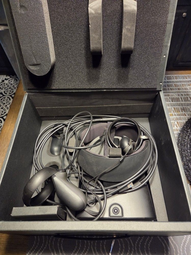 The rift S in original box. Used a handful of times and just collecting dust. Connects to computer via a display port and USB. Original controllers included that require AA batteries