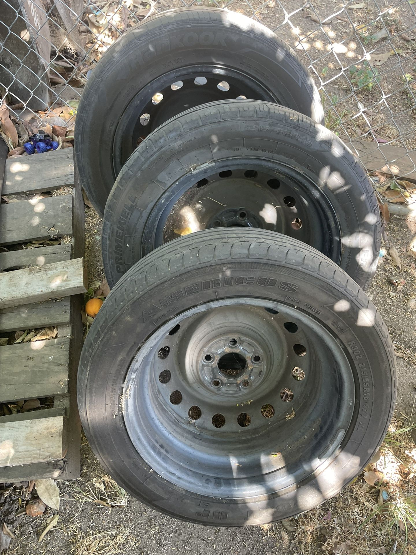 I have only 3 wheels my son had them as spares they are 5 lug for Honda 215/55R16 they are in need of tires take them for free