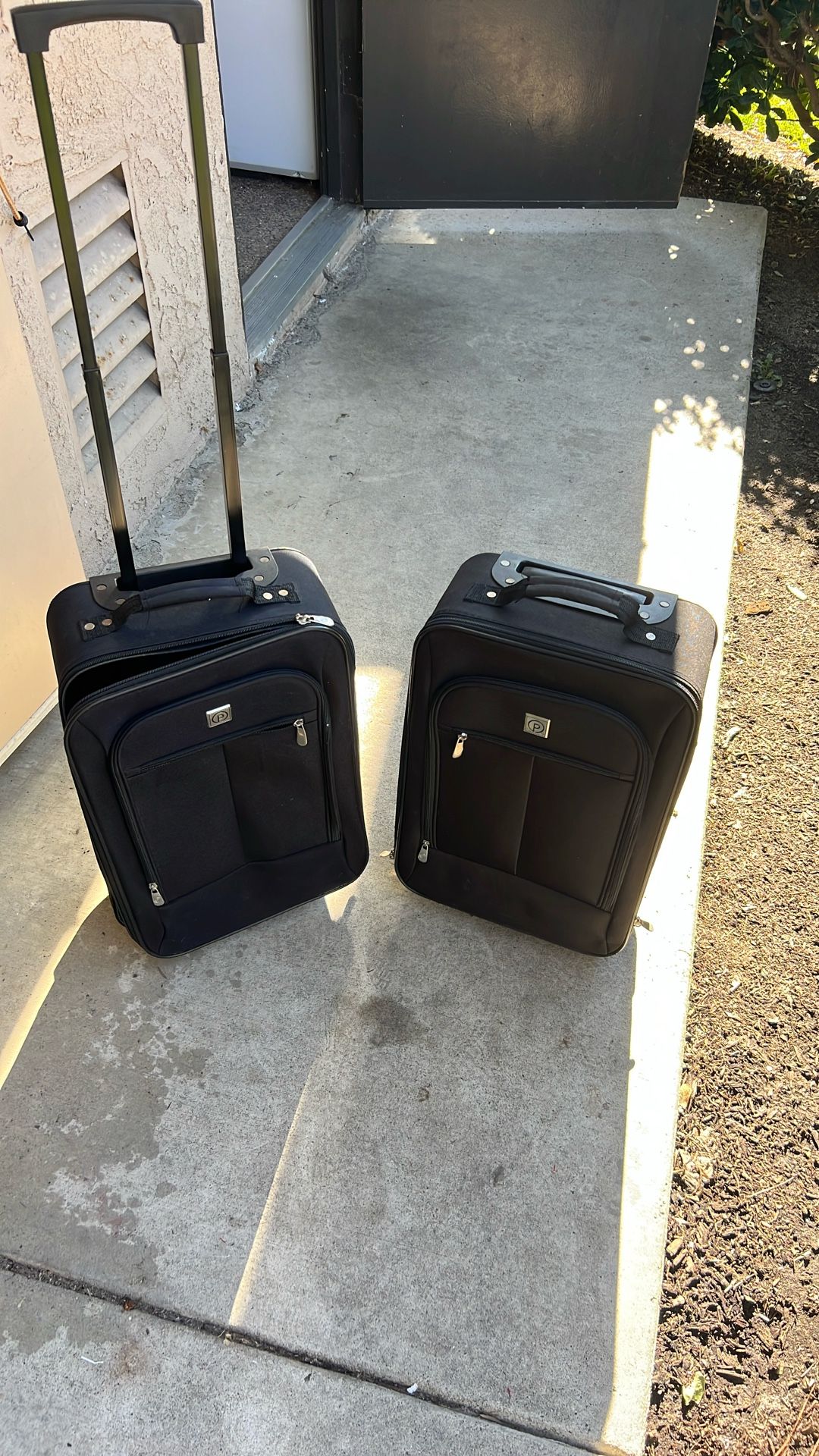 Two carry on light suitcases like new priced at 15.00 each. Measures 20x12 x six and a half and I would say these are like overnight bags or perfect for someone who travels light.