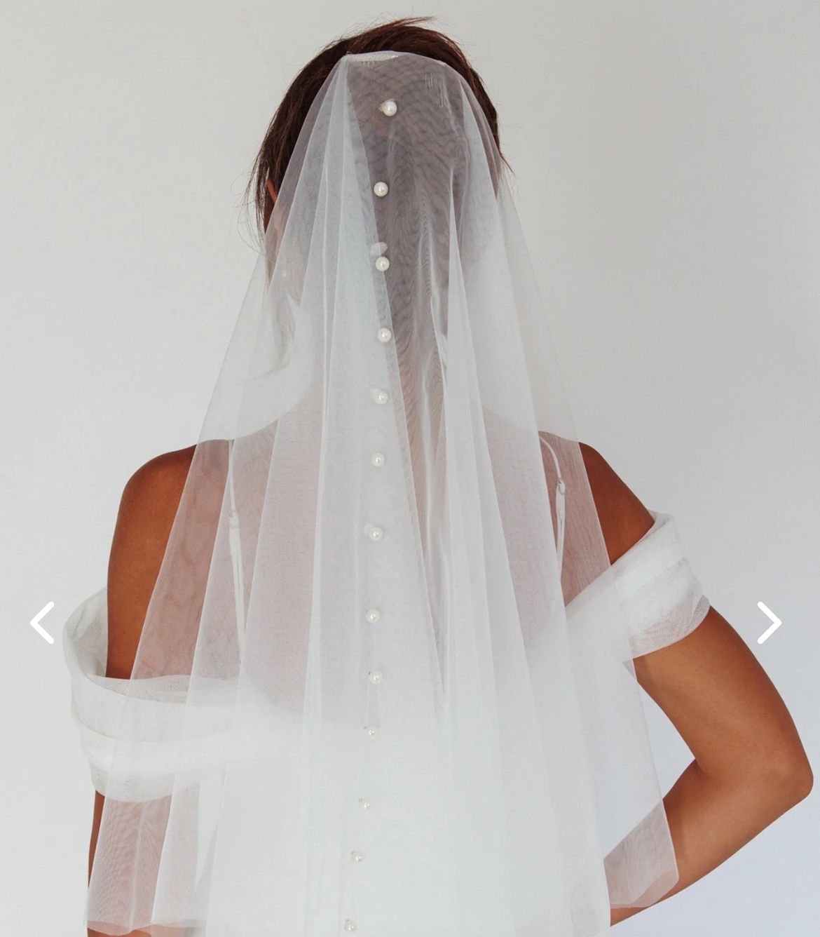 Pearl detail, brand new , never used in packaging. Medium length, white