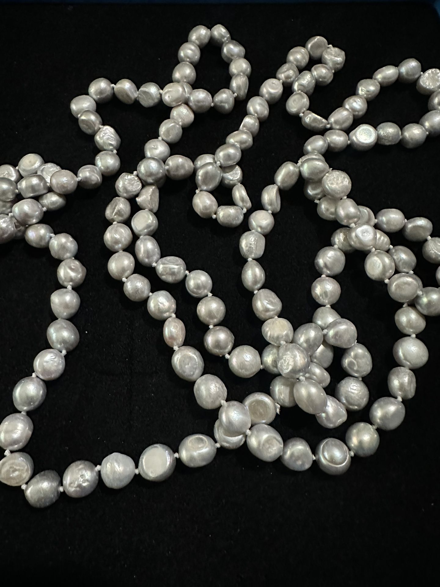 62 Inch Silver Pearl Necklace Absolutely Stunning
