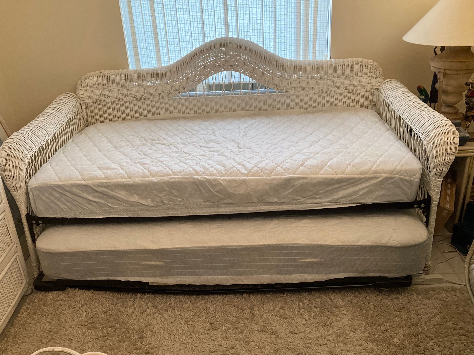 Wicker Trundle Bed and Bedroom Sét