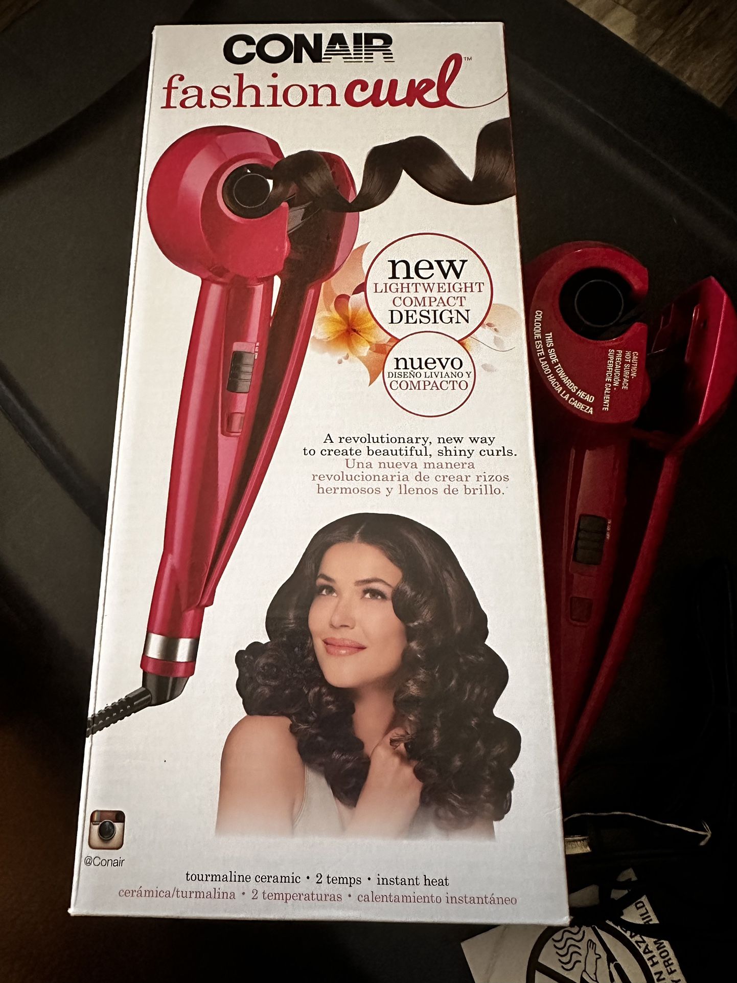 Makes great curls open box never used On Amazon its $49 on sale Cash only pickup only $25 • Effortlessly forms perfect curls (with safety sensor for tangle-free curls). Suitable for all hair lengths and types • TouTourmaline Ceramic technology reduces frizz and flyaways, and protects hair from damage. • 400°F high heat; high-performance heater for instant, even heat-up and recovery. 30-second instant heat-up with 2 heat settings • Single built in :12 automatic timer with beep indicator with auto-off • 6-foot anti-tangle swivel power cord • Auto sleep mode for energy-efficient power reduction