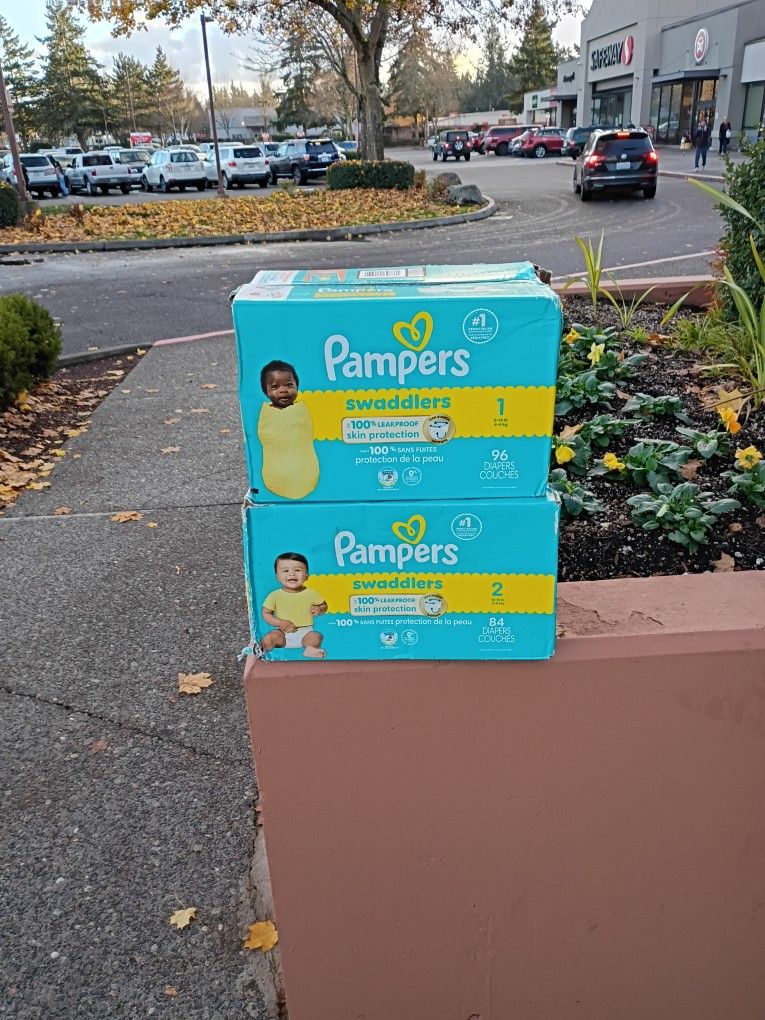 Need diapers fast? Get this bundle of two unused, sealed packs of Pampers! * Pack 1: Size 1 (96 Count) * Pack 2: Size 2 (84 Count) Condition Note: The contents are factory-sealed and in perfect condition, but the outer boxes have minor damage (see photos). π₯ FAST SALE BONUS! π₯ Purchase within 24 hours of this listing, and I will include a FREE bonus pack of baby wipes! Selling fast, pickup today!