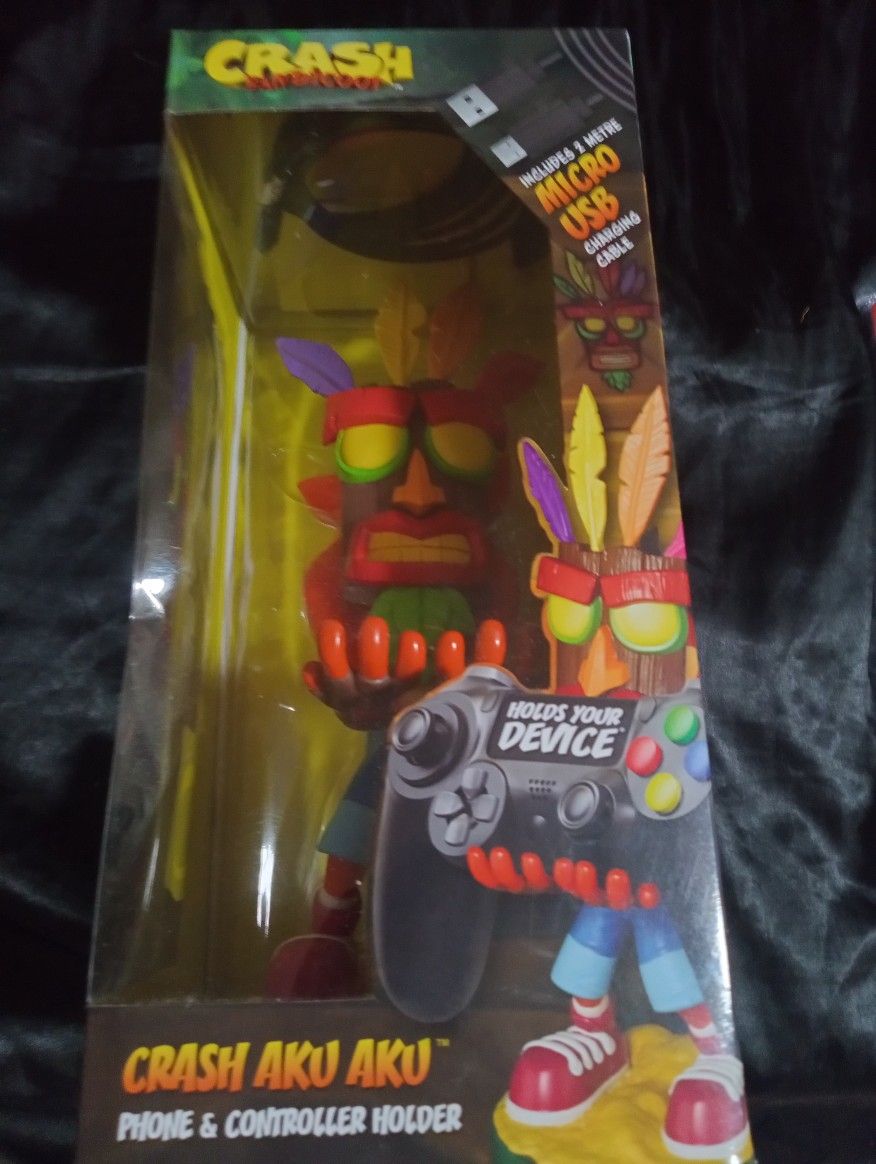 This is a brand new never out of the box, Crash Bandicoot... Crash AKU AKU phone & controller holder for the game love in you or in your life. The box is about damaged from moving...but the stuff in the box has never been out , box has never been opened. So it's brand new. I'm asking $30 or best off..