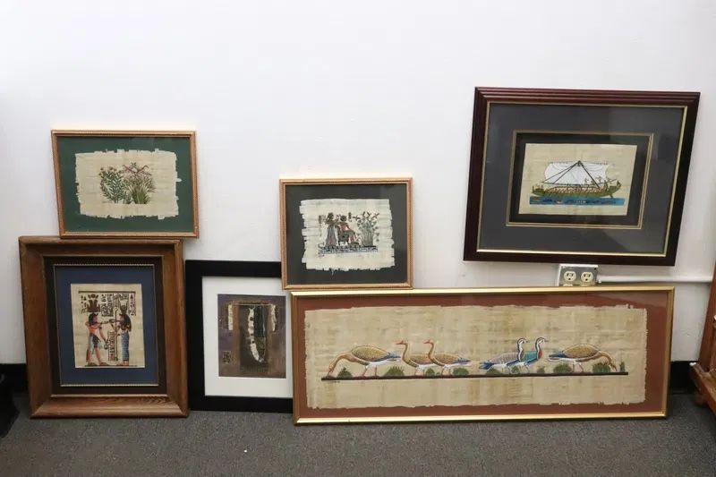 Shipping available. Will sell separately 5 Egyptian decorative paintings, 9.5"x7.5" - 11.4"x37"