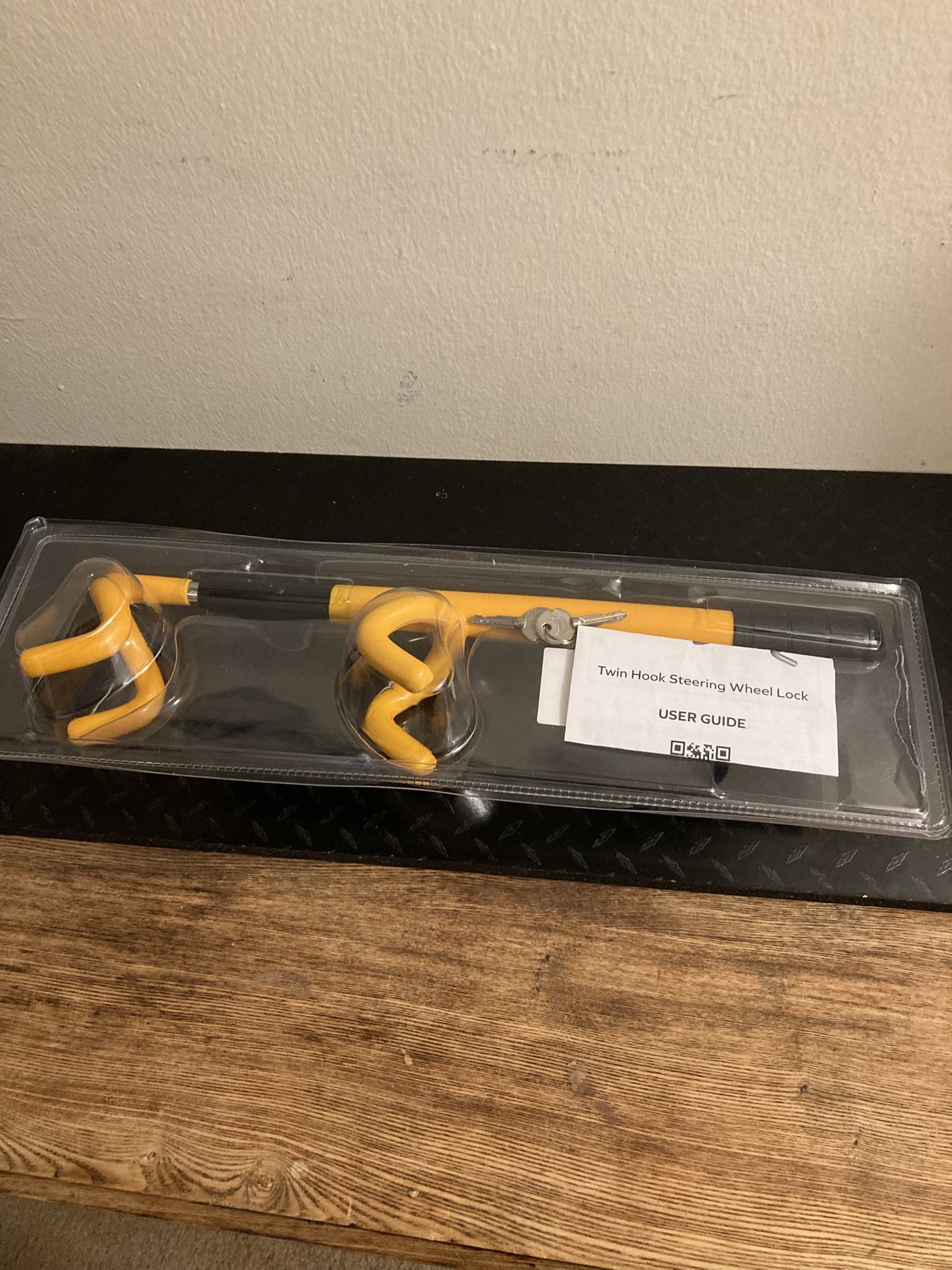 Anti-theft device. Makes it impossible to steer the vehicle. Potential thieves look in the window and see that and just move on!