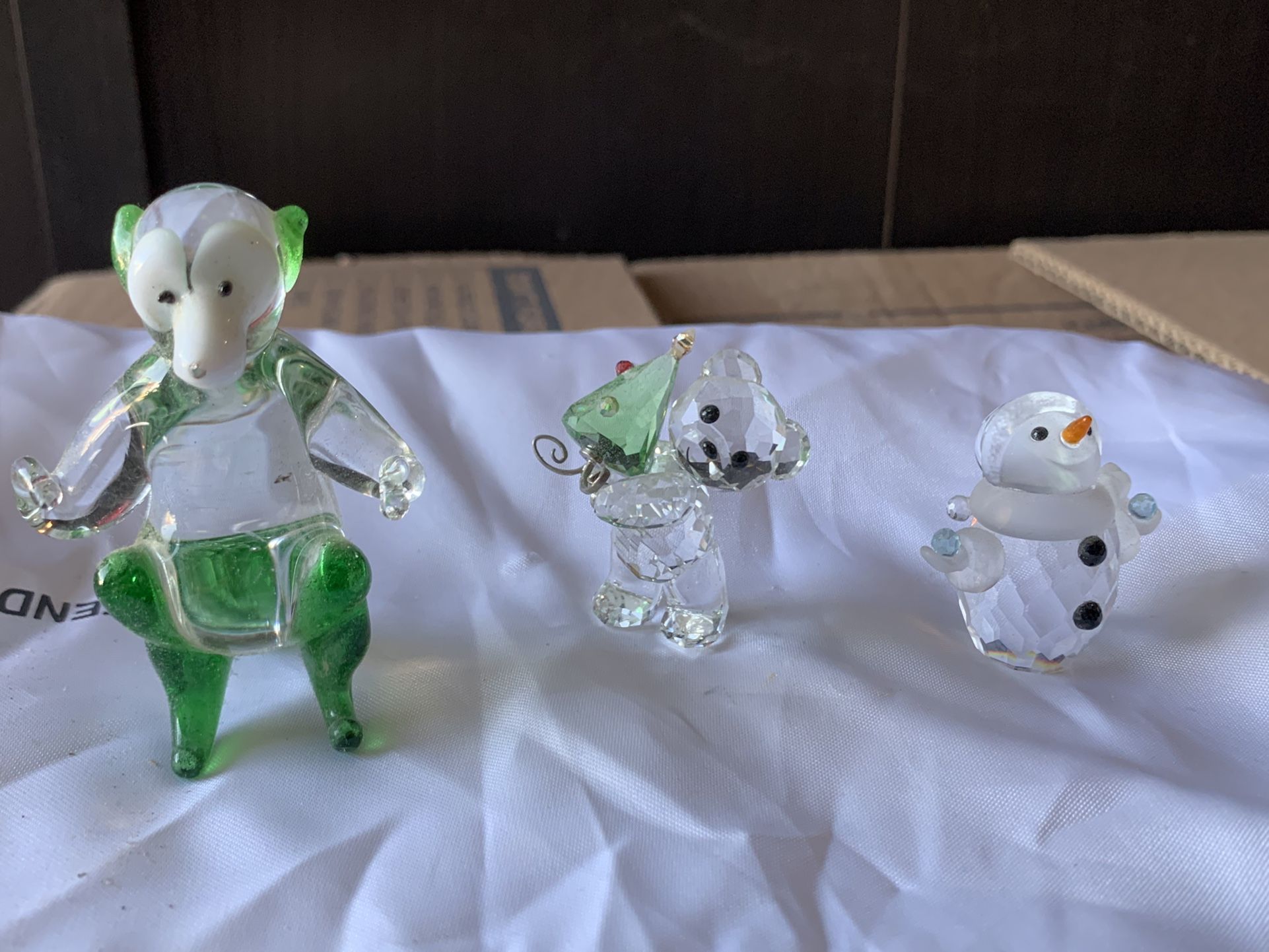 Mix clear Figurines—bear, snowman, monkey Mix clear Figurines—bear holding Xmas tree, snowman with a white scarf, standing green monkey