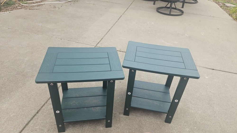 Pair of sturdy outdoor end tables in good condition. Approximately 17x13x16.5.