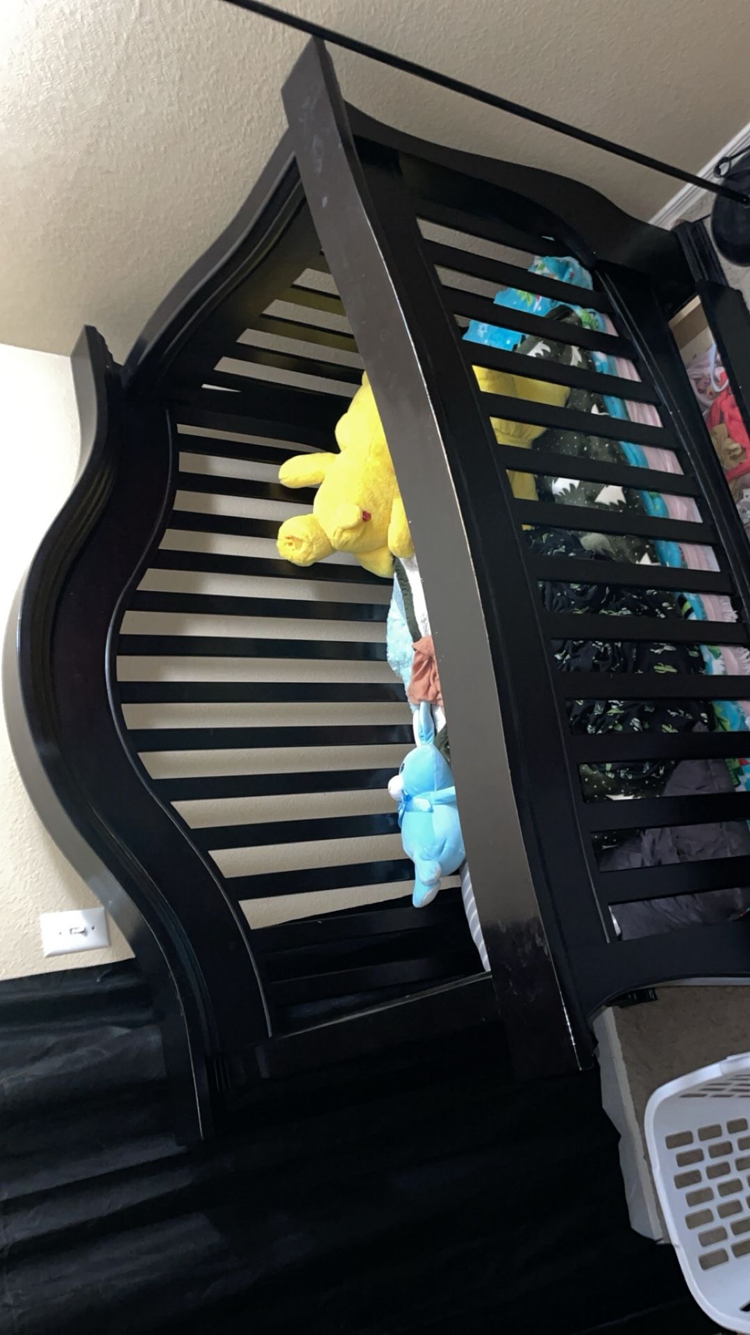 Used for a 3 kids so it’s got some scuff and chips in the paint. Base is adjustable, will need to be oiled. Drawer comes in and out underneath. Side piece is for toddler bed