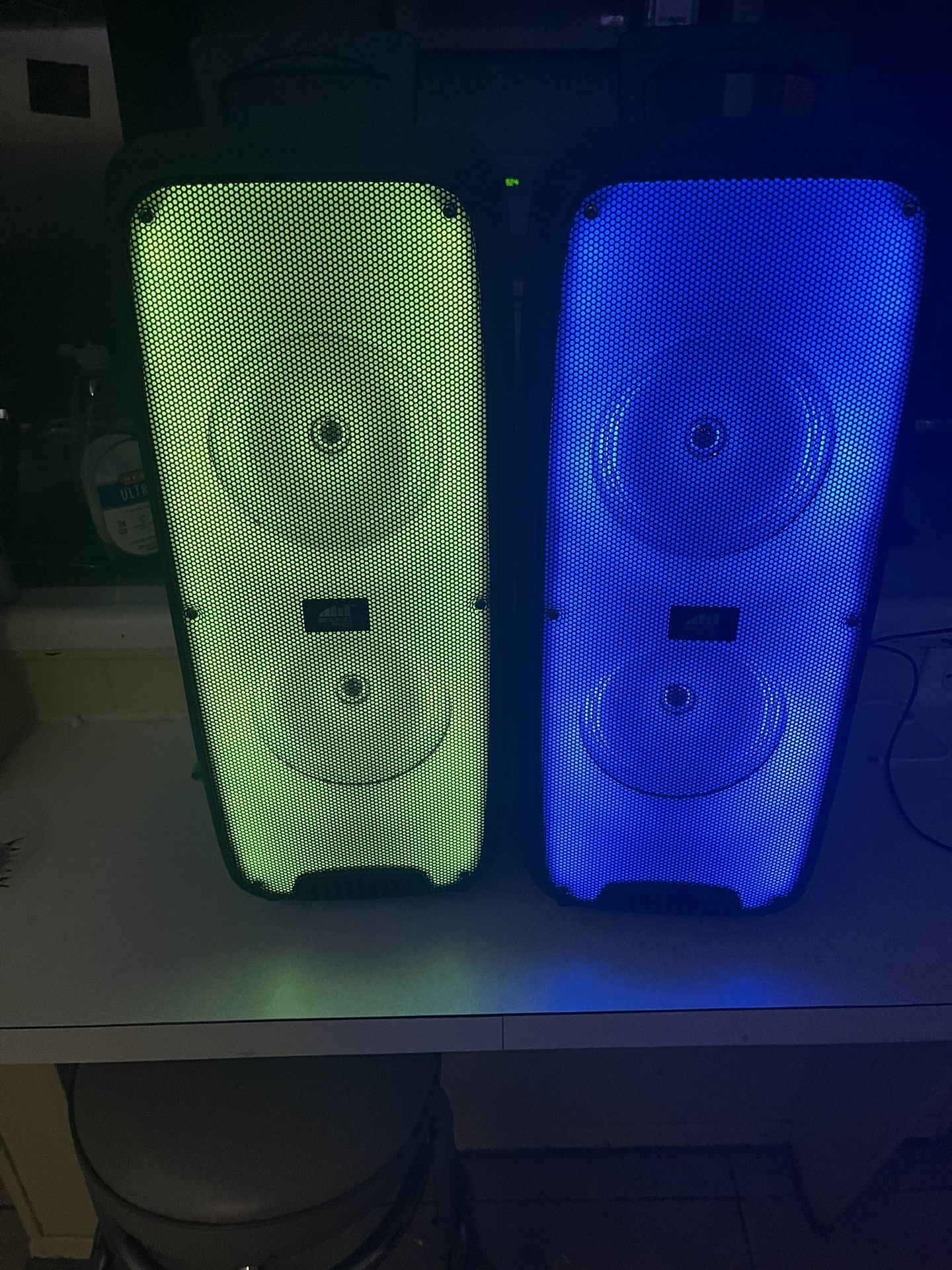 A pair of Bluetooth speakers with lights that follow each song! Mics and power wires all included. Both work perfectly.
